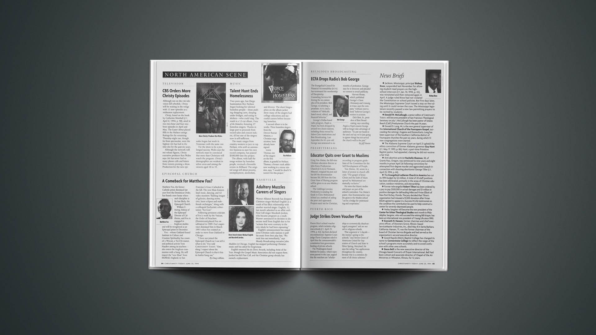 George’s Dallas-based radio program, People to People, has been dropped by around two dozen stations, including those owned by Salem Com-munications and Bott Broadcasting. Last September the 61-year-old George was sentenced to six months of probation. George says he is innocent and pleaded no contest to avoid publicity. Harvest House, which published George’s Classic Christianity and Growing in Grace, says the company “without reservations” believes George’s version is accurate.