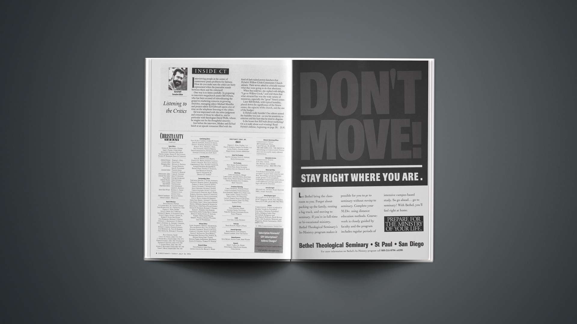 One way is to listen carefully. In preparing to interview megachurch pastor Bill Hybels, who has been accused of subordinating the gospel to marketing concerns in growing churches, managing editor Michael Maudlin and project editor Ed Gilbreath spent a lot of time on the telephone listening to the critics.