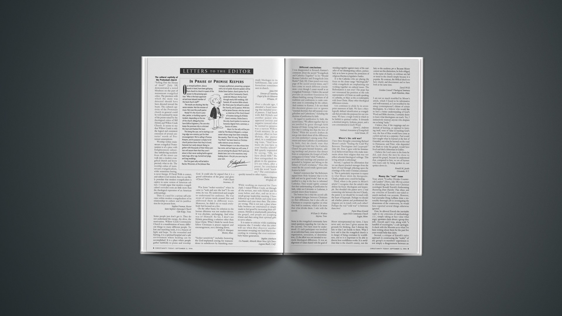 Brief letters are welcome; all are subject to condensation. Write to Eutychus, CHRISTIANITY TODAY, 465 Gundersen Drive, Carol Stream, Illinois 60188; fax: (708) 260-0114.