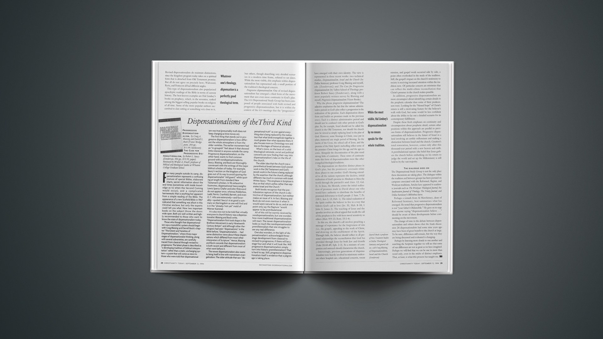 For many people outside its camp, dispensationalism represents a confusing mixture of special Bibles, elaborate charts, secret information about the end times (sometimes with inside knowledge as to when the Second Coming would occur), and a complicated hermeneutic that is anything but apparent from a simple reading of the Bible. The appearance of a new Scofield Bible in 1967 indicated that something was afoot in this Christian enclave, but only the experts could tell you what. Now two important books on the subject throw the doors wide open. Both are well written and highly recommended to those who want to know the state of dispensationalism today.
