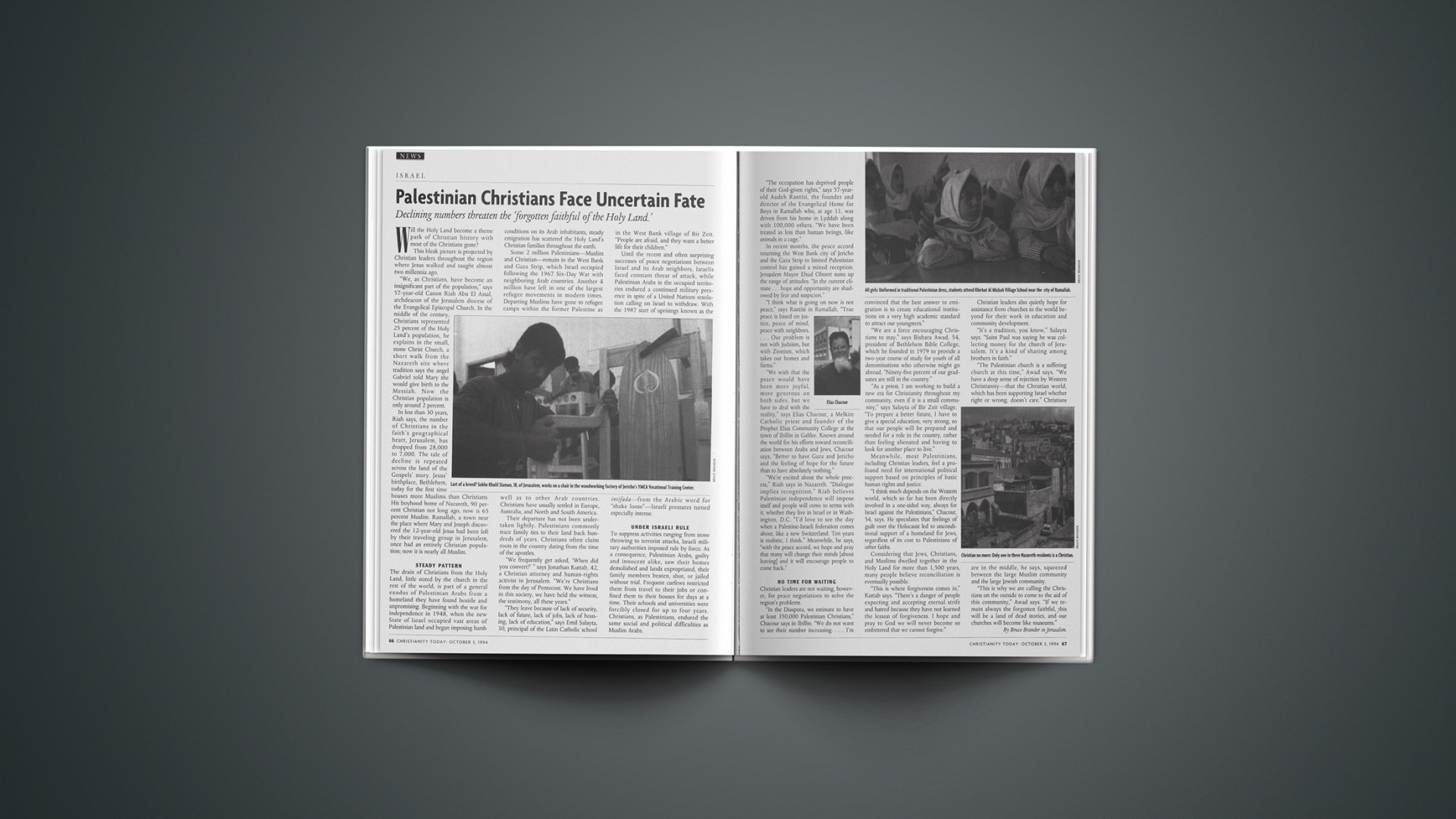 “We are a force encouraging Christians to stay,” says Bishara Awad, 54, president of Bethlehem Bible College, which he rounded in 1979 to provide a two-year course of study for youth of all denominations who otherwise might go abroad. “Ninety-five percent of our graduates are still in the country.”