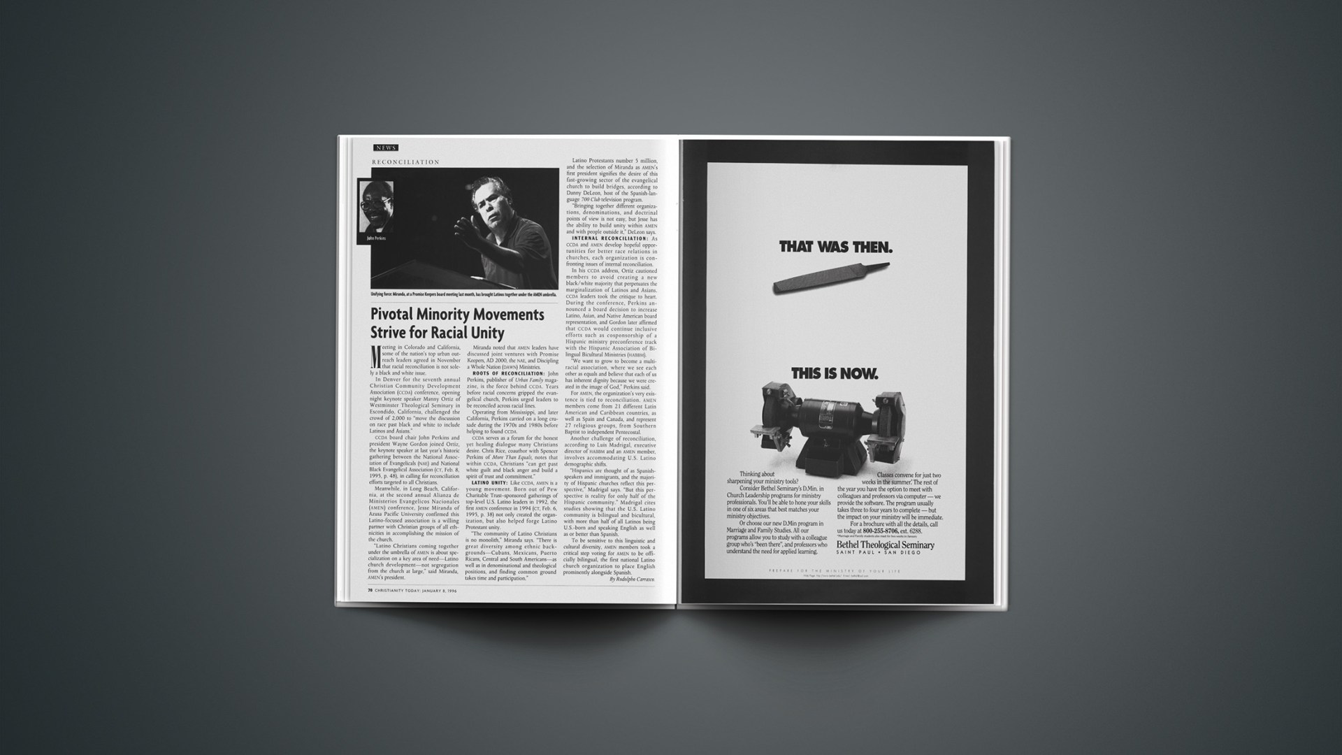 CCDA board chair John Perkins and president Wayne Gordon joined Ortiz, the keynote speaker at last year’s historic gathering between the National Association of Evangelicals (NAE) and National Black Evangelical Association (CT, Feb. 8, 1995, p. 48), in calling for reconciliation efforts targeted to all Christians.