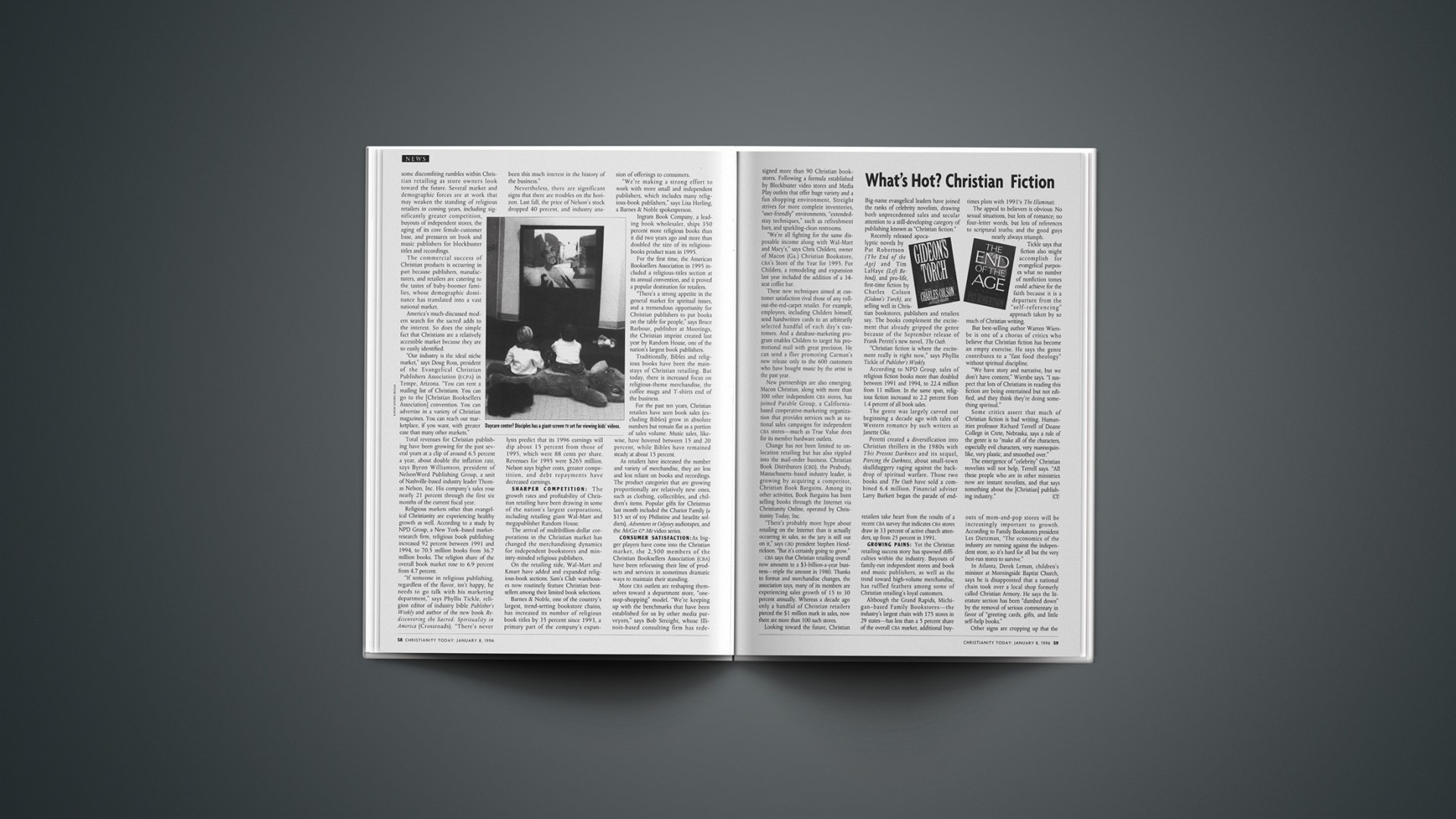 According to NPD Group, sales of religious fiction books more than doubled between 1991 and 1994, to 22.4 million from 11 million. In the same span, religious fiction increased to 2.2 percent from 1.4 percent of all book sales.