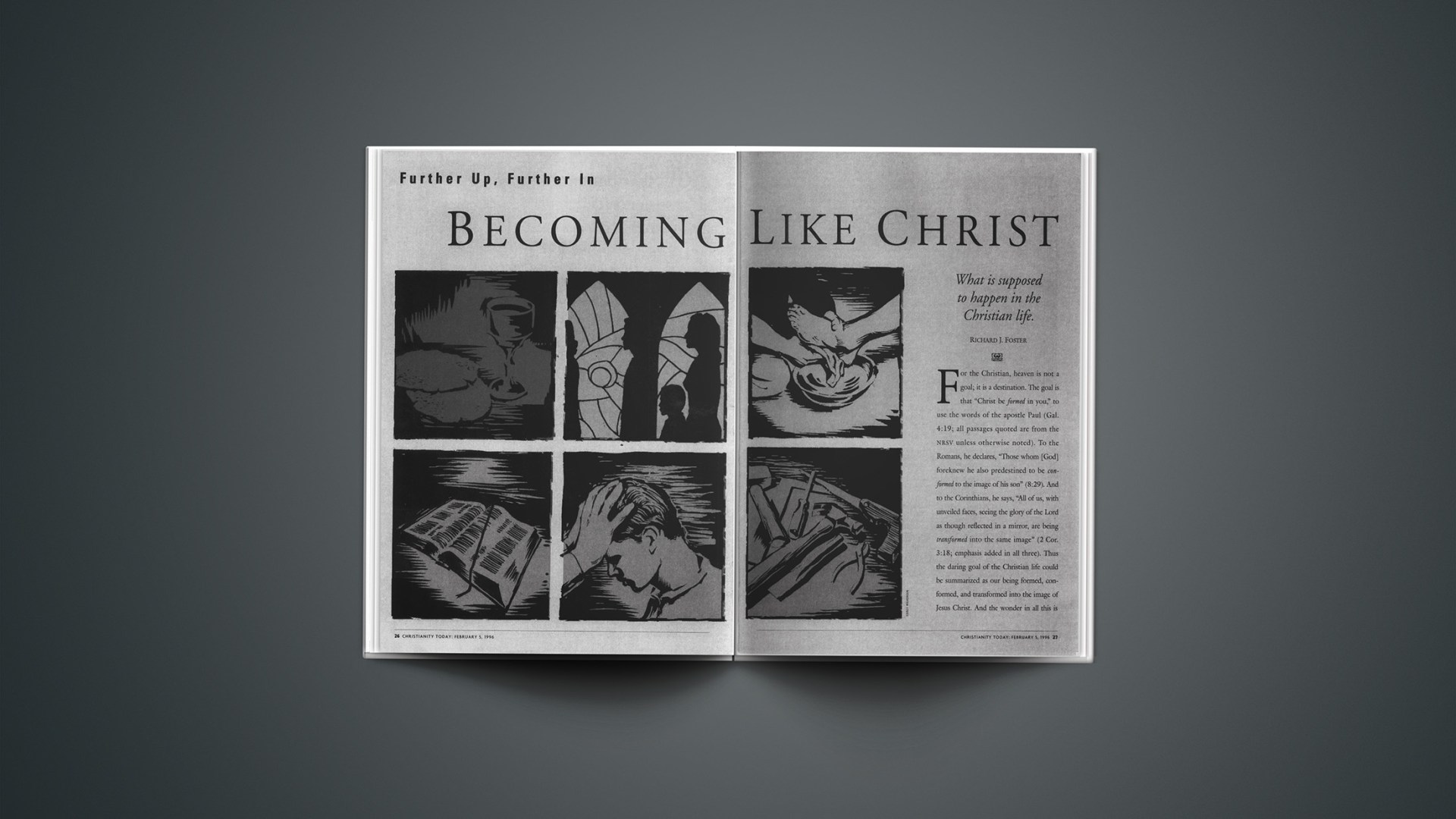 For the Christian, heaven is not a goal; it is a destination. The goal is that “Christ be formed in you,” to use the words of the apostle Paul (Gal. 4:19; all passages quoted are from the NRSV unless otherwise noted). To the Romans, he declares, “Those whom [God] foreknew he also predestined to be conformed to the image of his son” (8:29). And to the Corinthians, he says, “All of us, with unveiled faces, seeing the glory of the Lord as though reflected in a mirror, are being transformed into the same image” (2 Cor. 3:18; emphasis added in all three). Thus the daring goal of the Christian life could be summarized as our being formed, conformed, and transformed into the image of Jesus Christ. And the wonder in all this is that Jesus Christ has come among his people as our everliving Savior, Teacher, Lord, and Friend.