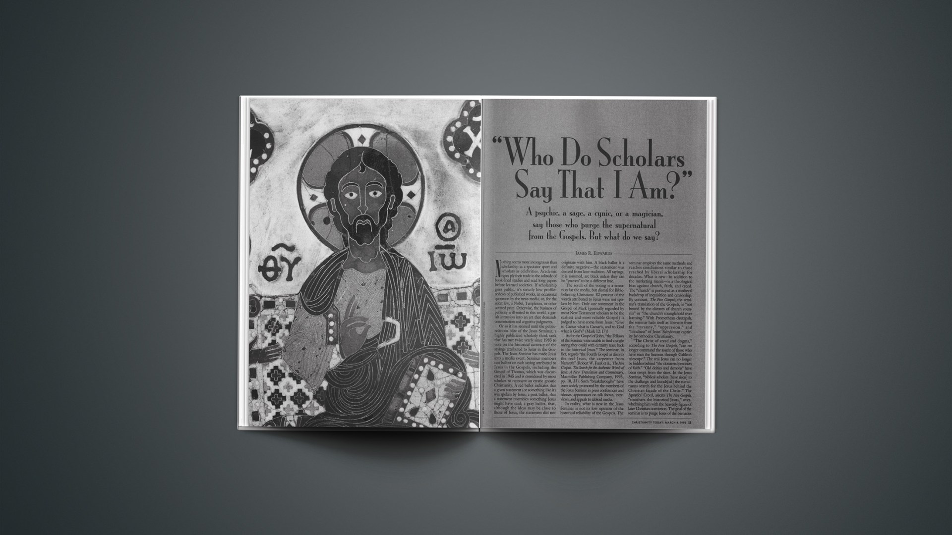 In reality, what is new in the Jesus Seminar is not its low opinion of the historical reliability of the Gospels. The seminar employs the same methods and reaches conclusions similar to those reached by liberal scholarship for decades. What is new–in addition to the marketing mania–is a theological bias against church, faith, and creed. The “church” is portrayed as a medieval backdrop of inquisition and censorship. By contrast, “The Five Gospels,” the seminar’s translation of the Gospels, is “not bound by the dictates of church councils” or “the church’s stranglehold over learning.” With Promethean chutzpah, the seminar hails itself as liberator from the “tyranny,” “oppression,” and “blindness” of Jesus’ Babylonian captivity by orthodox Christianity.