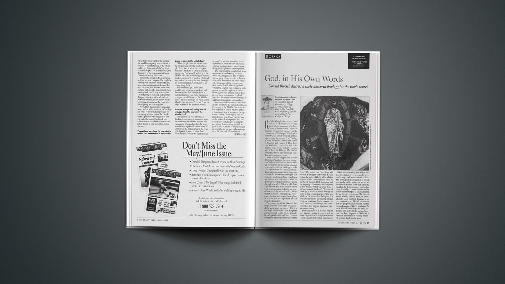 “God the Almighty” is volume 3 of Donald G. Bloesch’s projected seven-volume systematic theology, “Christian Foundations.” Bloesch, emeritus professor of theology at the University of Dubuque Theological Seminary, has already received enthusiastic reviews for volume 1, “A Theology of Word and Spirit: Authority and Method in Theology,” and volume 2, “Holy Scripture: Revelation, Inspiration, and Interpretation” (for a review of both volumes, see CT, June 20, 1994, p. 37). God the Almighty achieves the same high standard set by its predecessors.