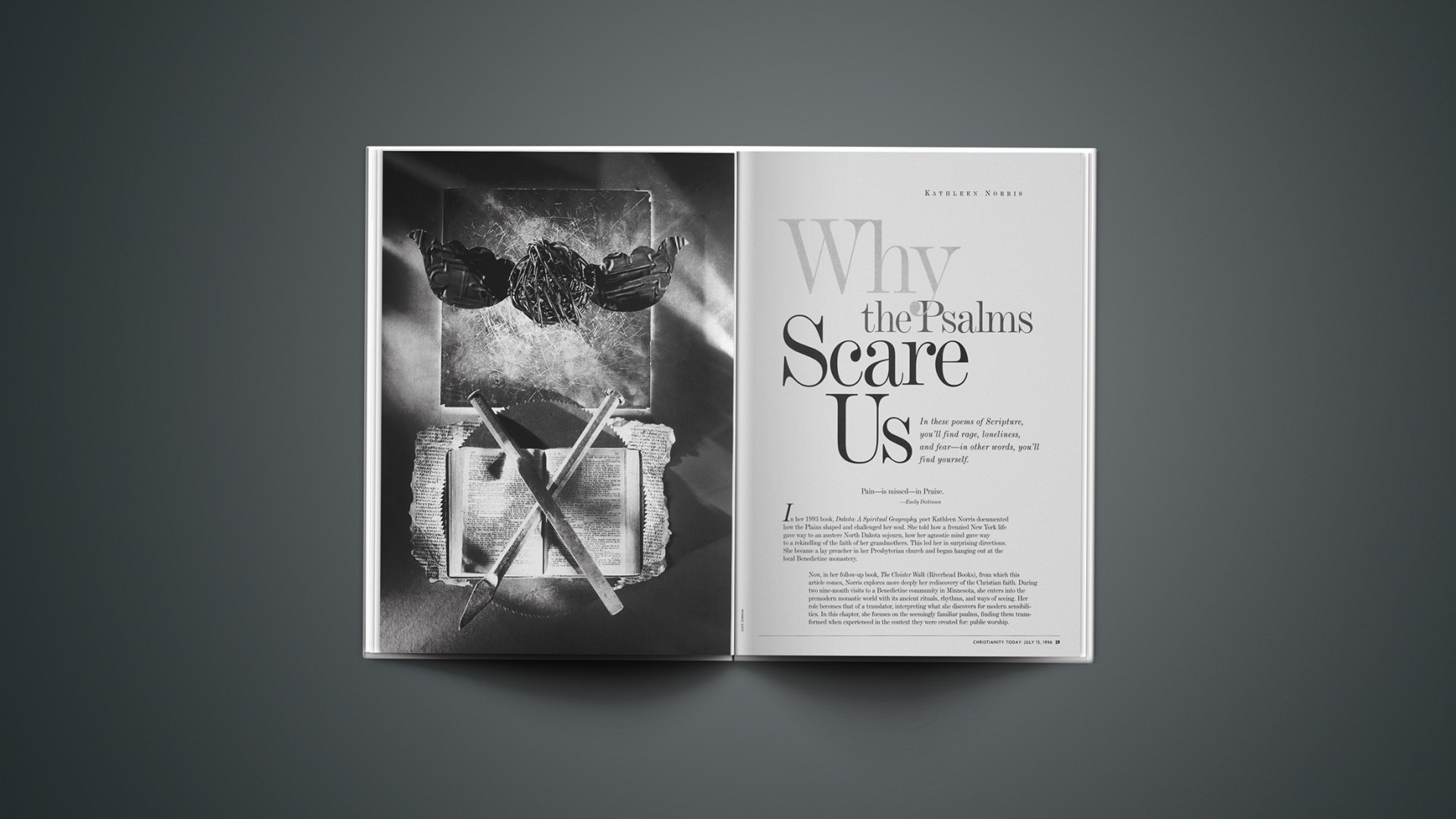 Now, in her follow-up book, The Cloister Walk (Riverhead Books), from which this article comes, Norris explores more deeply her rediscovery of the Christian faith. During two nine-month visits to a Benedictine community in Minnesota, she enters into the premodern monastic world with its ancient rituals, rhythms, and ways of seeing. Her role becomes that of a translator, interpreting what she discovers for modern sensibilities. In this chapter, she focuses on the seemingly familiar psalms, finding them transformed when experienced in the context they were created for: public worship.