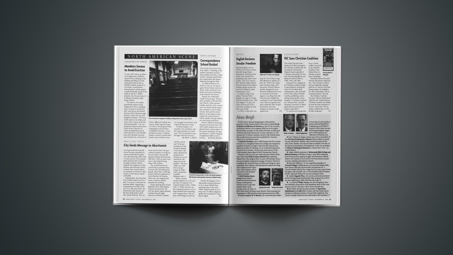 “The specter of a secular government agency being employed to evict a congregation is a stench in God’s nostrils,” says Steven McFarland, director of the Christian Legal Society’s Center for Law and Religious Freedom. “The heart of this seems to be dollars and cents, with a veneer of denominational principle.” The congregation had previously been a part of the Churches of Christ (Campbellite) and in 1982 had borrowed $70,000 from the Christian Development Fund (CDF), a Church of Christ-affiliated lending association. Elders agreed to give CDF title to the property if the congregation strayed from Campbellite doctrine. A new, charismatic pastor, Anthony Sanders, arrived a month later. Sanders says Lockhaven has not changed its doctrines, and it paid off the loan in time.