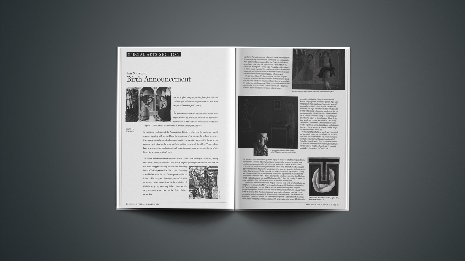 In the fifteenth century, Annunciation scenes were highly favored by artists; elaborations on the theme, shown here in the works of Renaissance painter Fra Angelico and a woodcut of Albrecht Dürer.