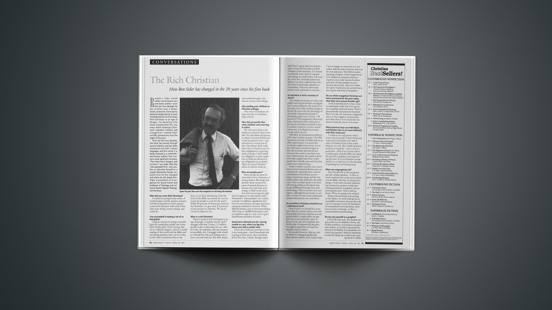 Over the last two decades, the book has moved through several editions and has been translated into half a dozen languages, and this month it is being reissued in a twentieth-anniversary edition that contains some significant revisions. “The times have changed, and so have I,” says Sider. Here the Yale-educated Ph.D., who prefers to describe himself as a simple Mennonite farmer, explains how he has changed and where he still stands firm. Sider is president of Evangelicals for Social Action and professor of theology and culture at Eastern Baptist Theological Seminary.