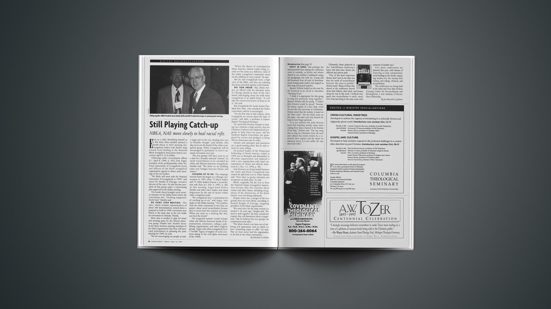 CATCHING UP TO DO: The campaign toward closer ties began at a Chicago convocation in 1995 when 75 black leaders and 75 white leaders formed a reconciliation task force (CT, Feb. 6, 1995, p. 48). At that meeting, Argue knelt before Hamlin and other NBEA leaders and asked forgiveness for the sins of racism within white evangelical ranks.