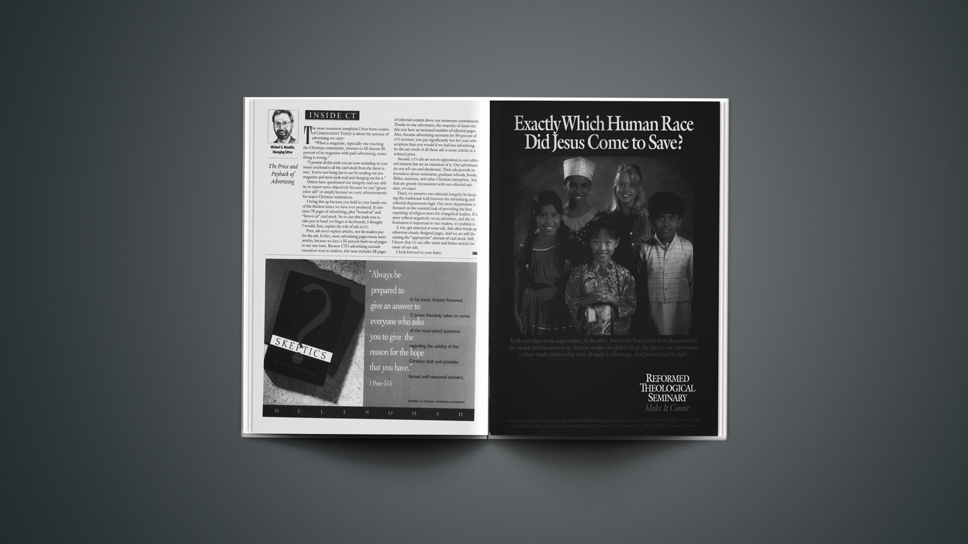 "When a magazine, especially one reaching the Christian community, chooses to fill almost 50 percent of its magazine with paid advertising, something is wrong."