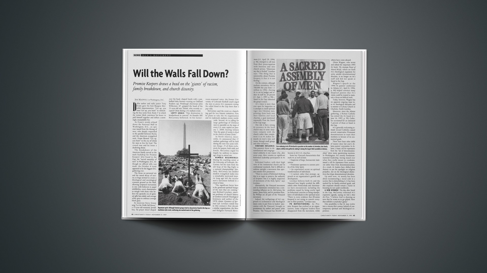 “The significant factor here is the grassroots spiritual hunger of the men that are coming,” says Richard Lovelace, emeritus professor of church history at Gordon-Conwell Theological Seminary and author of the 1978 classic Dynamics of Spiritual Life. Lovelace noted that in this century’s first decade a similar organization, the Men and Religion Forward Movement (CT, April 29, 1996, p. 46), emerged to call men from their preoccupation with business and into church service. “Historians say that it fizzled,” Lovelace says. “The thing that is noteworthy about Promise Keepers is that it is not fizzling.”