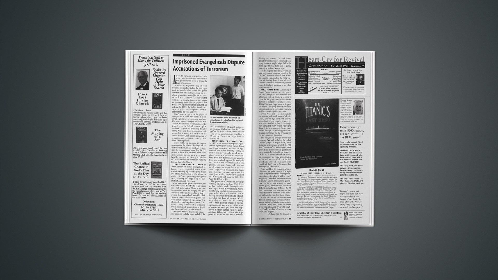 Ruiz’s case is typical of the plight of evangelicals in Peru, who consider themselves victimized by antiterrorism laws. The case reminds lawyer Alfonso Wieland of the church’s continuing need for a legal team to defend human rights. Wieland, 34-year-old executive director of the Peace and Hope Association, estimates that as many as a quarter of the approximately 4,000 people convicted of terrorism are innocent, among them some 80 evangelicals.