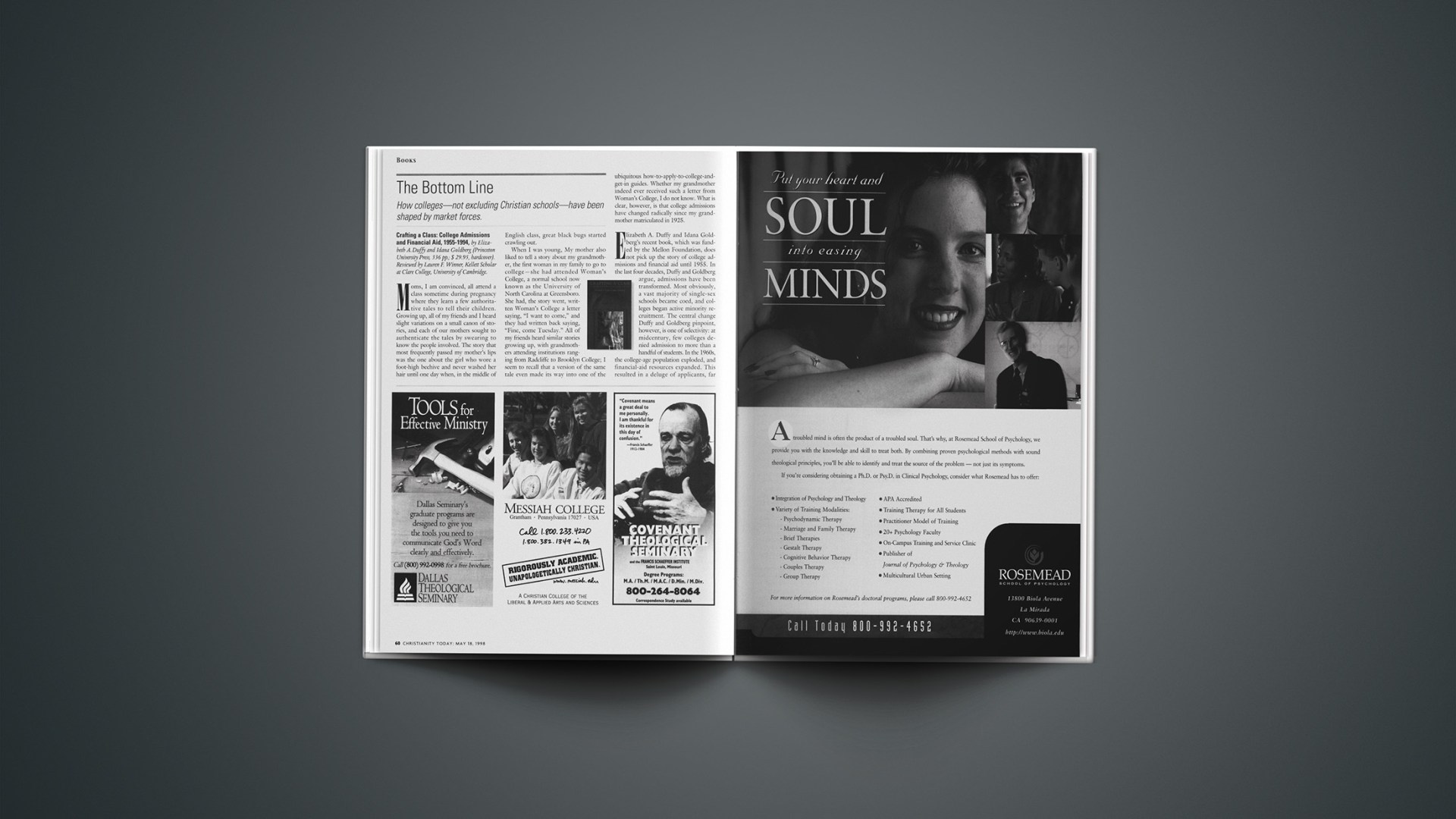 One admissions officer at a small Christian college told me that his school had recently debated changing its admission policy to admit only Christian students. “That would be truly in keeping with the mission of the school,” he said, “but we can’t do it, any more than we can limit our student body to the kind of high academic achievers we’d like to see. We have to remember the mission of the college, but the main concern is the bottom line.”