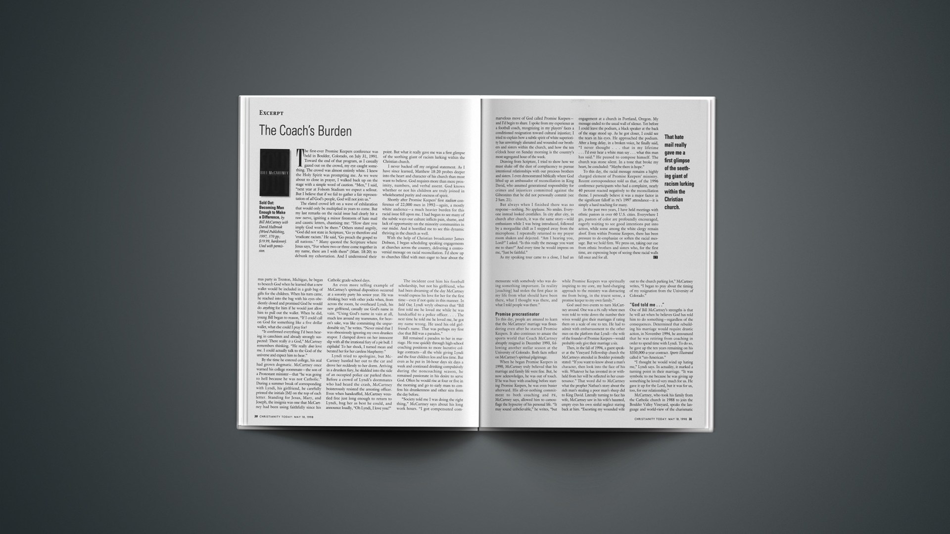 Sold Out: Becoming Man Enough to Make a Difference, by Bill McCartney with David Halbrook (Word Publishing, 1997, 370 pp.; $19.99, hardcover). Used with permission.