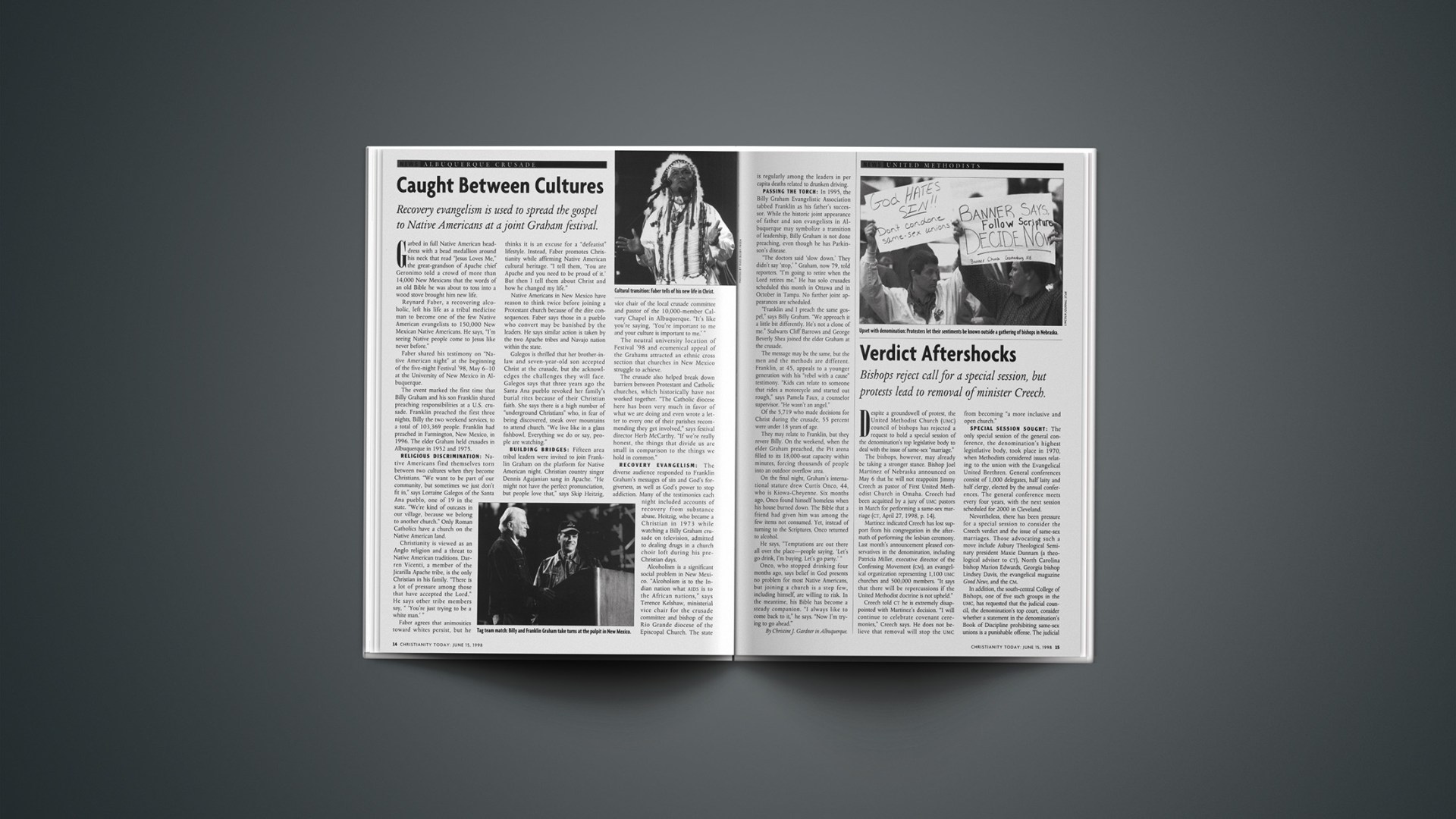 RELIGIOUS DISCRIMINATION: Native Americans find themselves torn between two cultures when they become Christians. “We want to be part of our community, but sometimes we just don’t fit in,” says Lorraine Galegos of the Santa Ana pueblo, one of 19 in the state. “We’re kind of outcasts in our village, because we belong to another church.” Only Roman Catholics have a church on the Native American land.