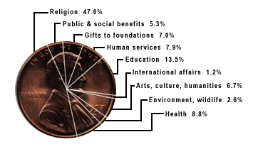 Donations in 1997 rose 7.5% to $143.5 billion. Individual gifts to religious causes were the most common.