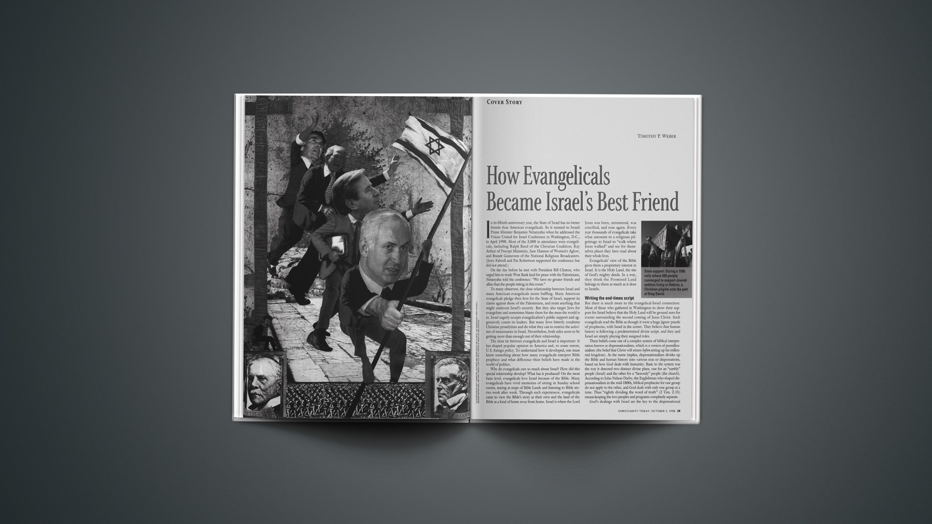 In its fiftieth anniversary year, the State of Israel has no better friends than American evangelicals. So it seemed to Israeli Prime Minister Benjamin Netanyahu when he addressed the Voices United for Israel Conference in Washington, D.C., in April 1998. Most of the 3,000 in attendance were evangelicals, including Ralph Reed of the Christian Coalition, Kay Arthur of Precept Ministries, Jane Hanson of Women’s Aglow, and Brandt Gustavson of the National Religious Broadcasters. (Jerry Falwell and Pat Robertson supported the conference but did not attend.)