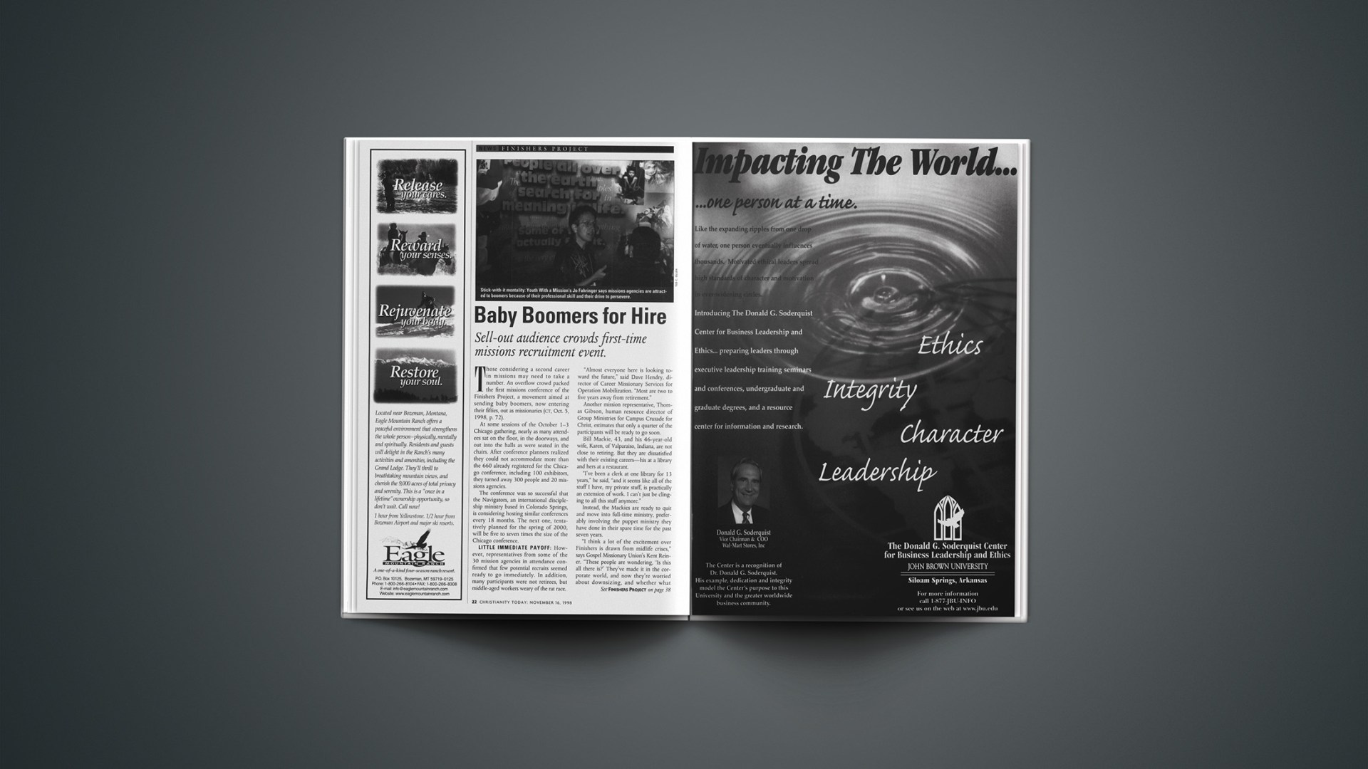 Those considering a second career in missions may need to take a number. An overflow crowd packed the first missions conference of the Finishers Project, a movement aimed at sending baby boomers, now entering their fifties, out as missionaries (CT, Oct. 5, 1998, p. 72).