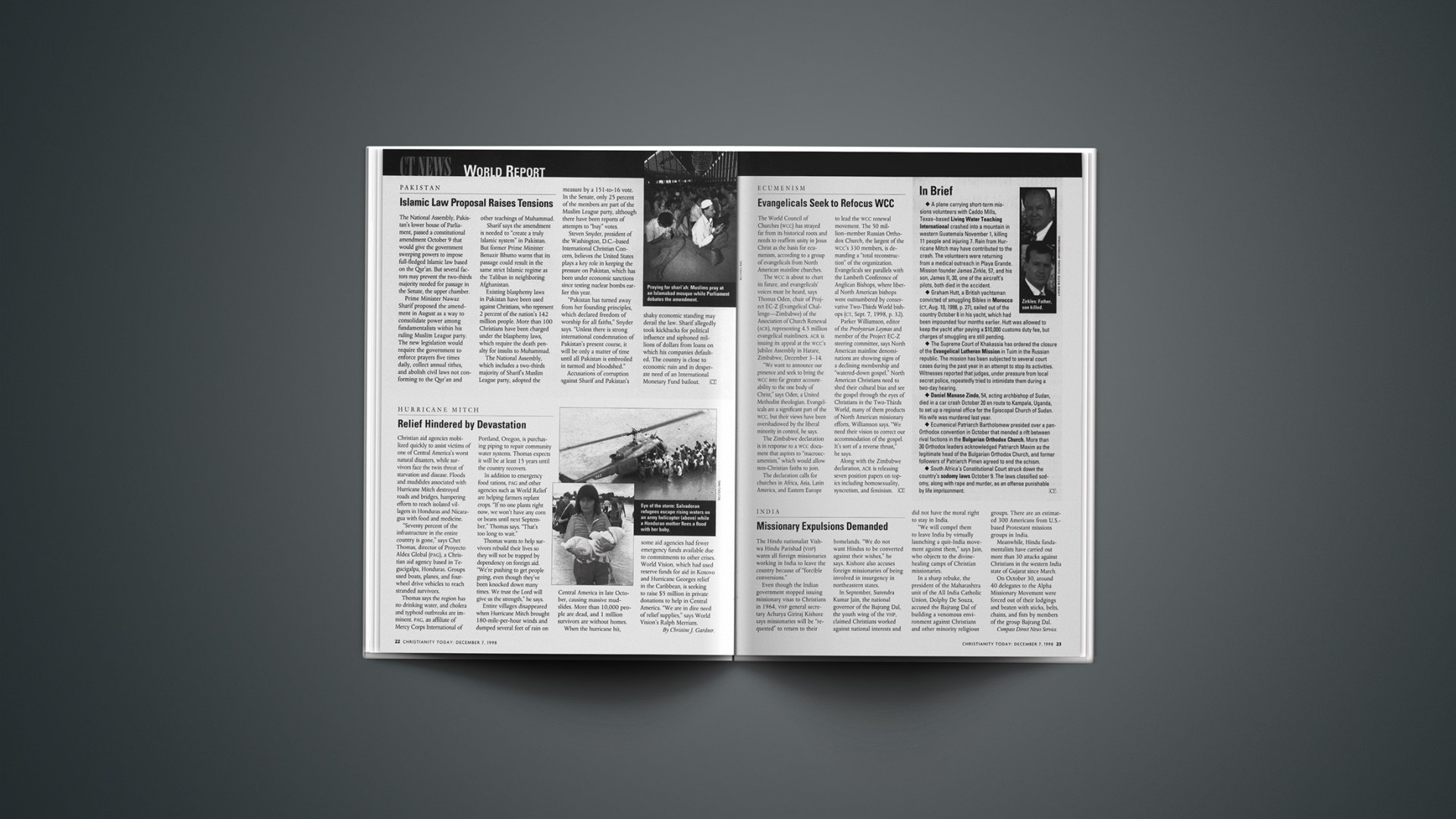 Christian aid agencies mobilized quickly to assist victims of one of Central America’s worst natural disasters, while survivors face the twin threat of starvation and disease. Floods and mudslides associated with Hurricane Mitch destroyed roads and bridges, hampering efforts to reach isolated villagers in Honduras and Nicaragua with food and medicine.