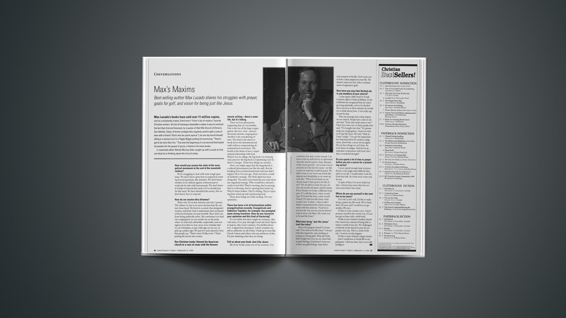 Best-selling author Max Lucado shares his struggles with prayer, goals for golf, and vision for being just like Jesus.