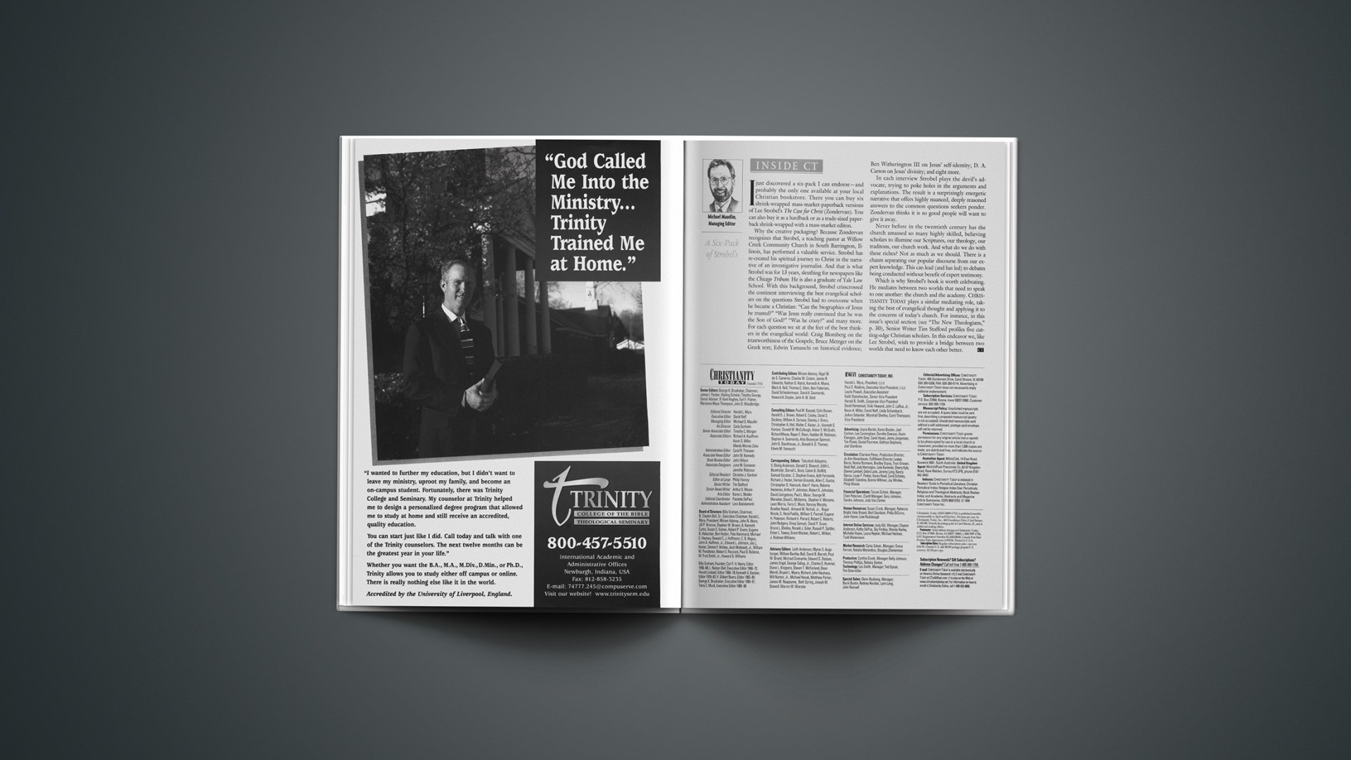 Which is why Strobel’s book is worth celebrating. He mediates between two worlds that need to speak to one another: the church and the academy. Christianity Today plays a similar mediating role, taking the best of evangelical thought and applying it to the concerns of today’s church. For instance, in this issue’s special section (see “The New Theologians,” p. 30), Senior Writer Tim Stafford profiles five cutting-edge Christian scholars. In this endeavor we, like Lee Strobel, wish to provide a bridge between two worlds that need to know each other better.