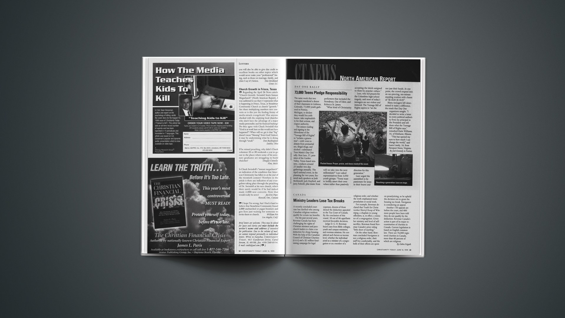 The unison reading and signing in the Silverdome of the “Teenage Bill of Rights” to “reclaim a generation”—with vows to abstain from premarital sex, illegal drugs, and alcohol—culminated Teen Mania’s Day One rally. Ron Luce, 37, president of the Garden Valley, Texasbased ministry, conducts around 25 smaller two-day gatherings annually. The April national event, in the planning for two years, featured such speakers as Josh McDowell, Jack Hayford, and Jerry Falwell, plus music from performers that included the Newsboys, Out of Eden, and Rebecca St. James.