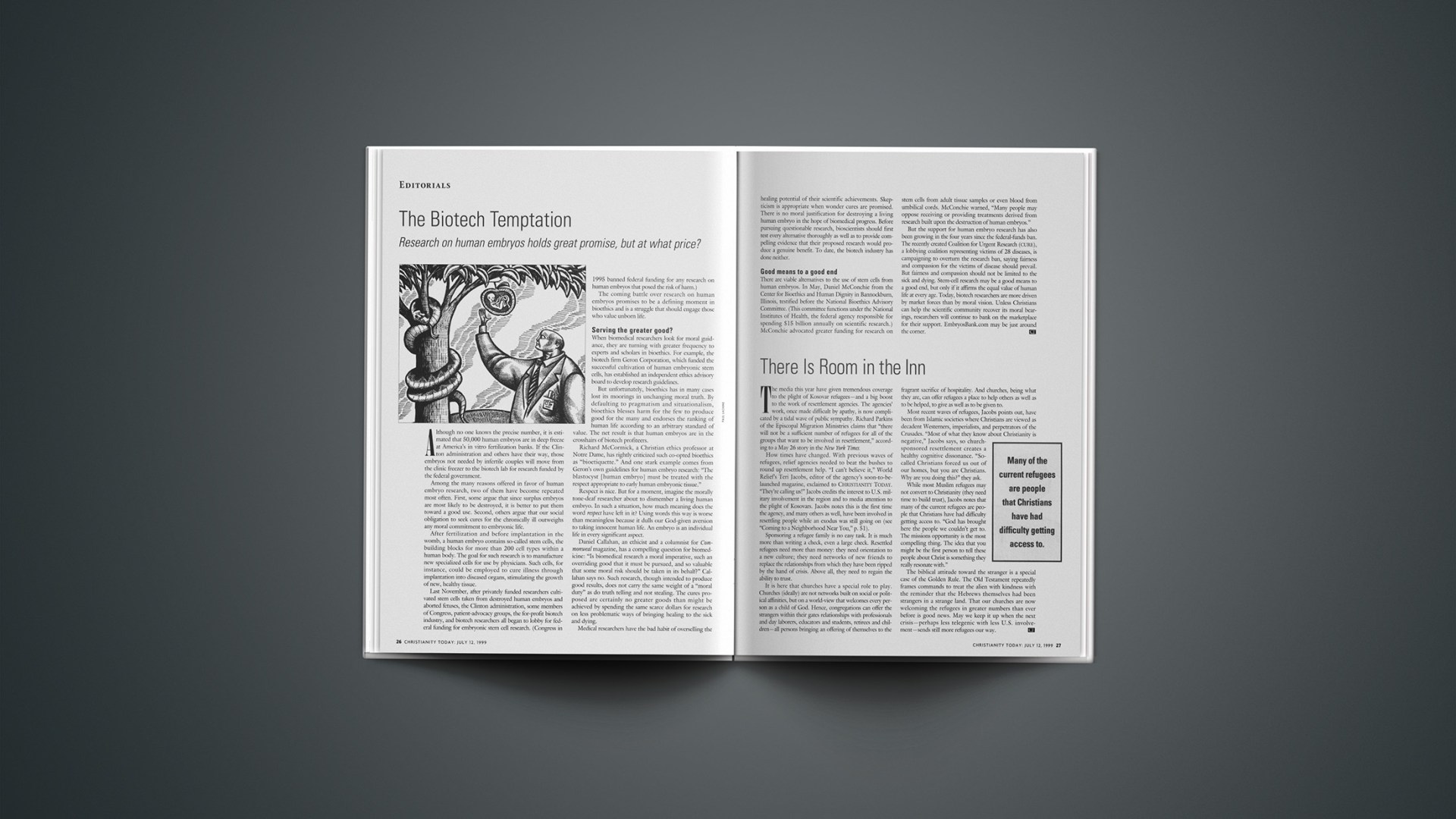 How times have changed. With previous waves of refugees, relief agencies needed to beat the bushes to round up resettlement help. “I can’t believe it,” World Relief’s Teri Jacobs, editor of the agency’s soon-to-be-launched magazine, exclaimed to Christianity Today. “They’re calling us!” Jacobs credits the interest to U.S. military involvement in the region and to media attention to the plight of Kosovars. Jacobs notes this is the first time the agency, and many others as well, have been involved in resettling people while an exodus was still going on (see “Coming to a Neighborhood Near You,” p. 51).