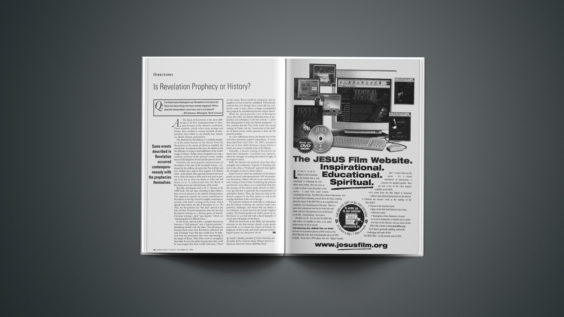 Recently, theologians such as R. C. Sproul, in his 1998 book The Last Days According to Jesus (Baker), have revived interest in the preterist interpretation. This approach regards the events symbolized in Revelation as having occurred roughly contemporaneously with John’s writing of the book, which Sproul dates before the fall of Jerusalem in A.D. 70. Thus, for the preterist, the “last days” arrived at the time of John. Preterist interpreters stress the fact that Revelation belongs to a distinct genre of Jewish-Christian writings called “apocalyptic,” which are “spiritual guides for difficult times.”