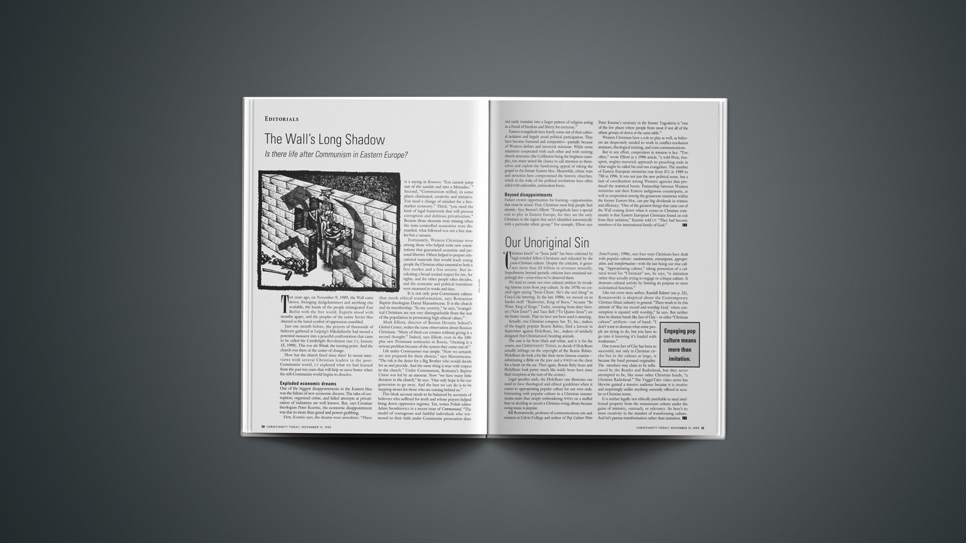 Ten years ago, on November 9, 1989, the Wall came down. Swinging sledgehammers and anything else avail able, the hands of the people reintegrated East Berlin with the free world. Experts stood with mouths agape, and the peoples of the entire Soviet bloc cheered as the hated symbol of oppression crumbled.