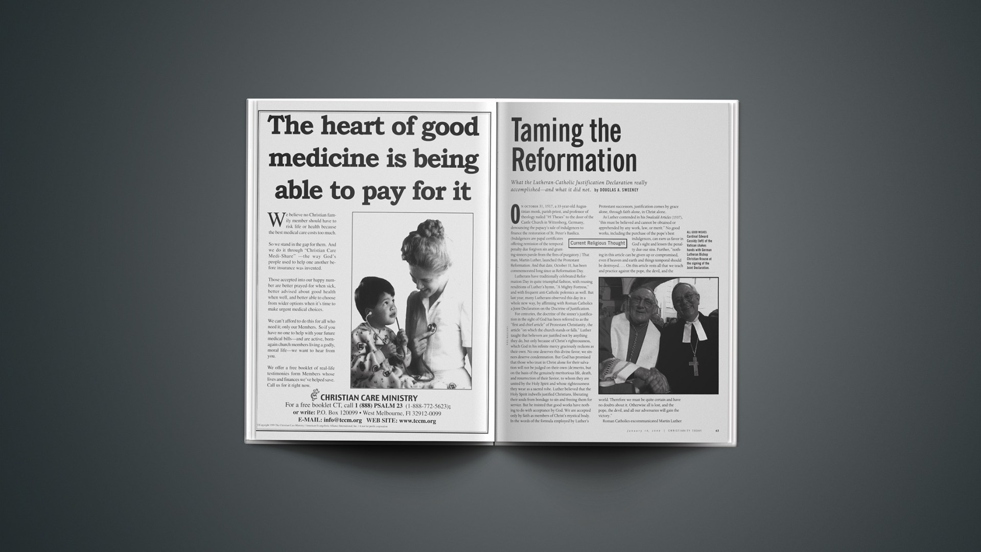 Lutherans have traditionally celebrated Reformation Day in quite triumphal fashion, with rousing renditions of Luther's hymn, "A Mighty Fortress," and with frequent anti-Catholic polemics as well. But last year, many Lutherans observed this day in a whole new way, by affirming with Roman Catholics a Joint Declaration on the Doctrine of Justification.