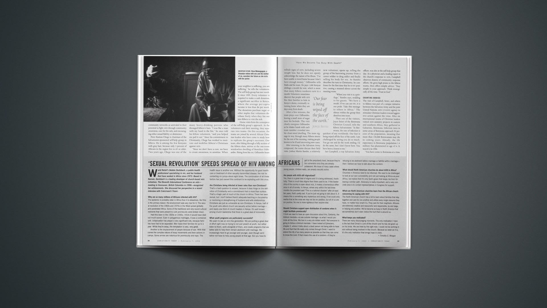 World Relief’s Debbie Dortzbach, a public-health professional specializing in HIV, and her husband Karl have worked in Africa since 1973. Based in Nairobi, Dortzbach is a leading developer of church-based AIDS initiatives. The Eleventh International Conference on AIDS—meeting in Vancouver, British Columbia in 1996—recognized her achievements. She discussed her perspective in a recent interview with Christianity Today:
