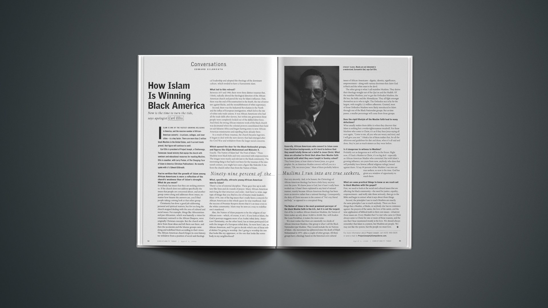 Carl Ellis is president of Project Joseph, a Chattanooga, Tennessee-based ministry that equips the church with seminars and educational resources for reaching Muslims. Ellis is coauthor, with Larry Poston, of The Changing Face of Islam in America (Christian Publications). He recently spoke with CT’s Edward Gilbreath.