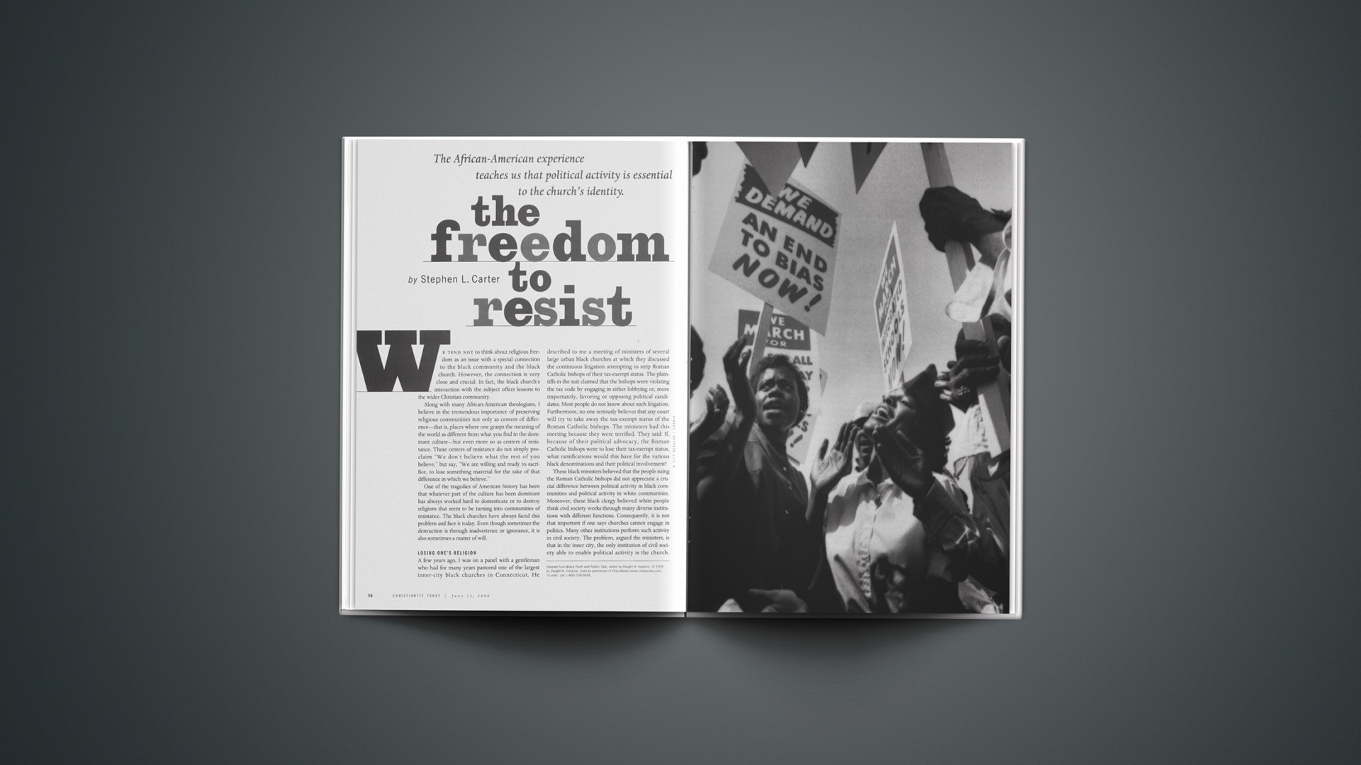 Religious freedom is important to our community because of our need to constitute ourselves as a community of resistance. One of the great powers of African-American theology is precisely that it calls on us to understand the connection between the actual day-to-day experience of our lives and the history of our people on the one hand, and the work God wants to do in the world on the other. That is a powerful connection—a connection that is different for different people, different for different groups of people, and even different for different groups of black people. But the power of that connection is what is important. The power of that connection and the power of religion working in the human imagination provide the potential resister, the member of this community of resistance, with the strength to stand up and be different. It is easy to stand up and be different when nothing is at stake. Anyone can do that. But the power of resistance is on display when one has to stand up and be different because something is at stake.