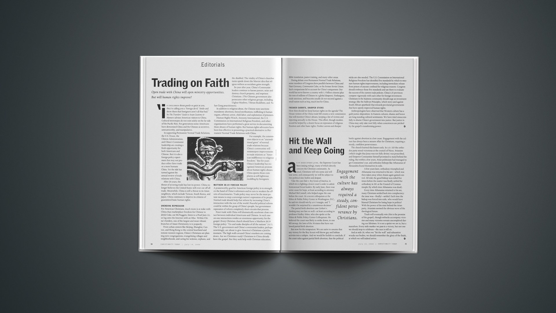 As it does every June, the Supreme Court has been issuing rulings, many of which directly concern the Christian community. As usual, Christians have won some and lost some, and consequently we are subject to two political sins: hubris and despair.Take the case Dale v. Boy Scouts of America, in which BSA fought a lower court’s order to admit homosexual Scout leaders. By early June, there was some cause for hope, at least according to attorney Michael McConnell, who helped argue the case before the court. At a recent colloquium at the Ethics & Public Policy Center in Washington, D.C., he said BSA should win by a 6– 3 margin, and “I wouldn’t be surprised by a unanimous decision.” (It actually wasn’t so close, winning by a 5-4 margin.)The partial-birth abortion case Carhart v. Stenberg was not expected to fare so well—at least according to professor Hadley Arkes, who also spoke at the Ethics & Public Policy Center Colloquium. He believed the court was likely to strike down, in one fell swoop, the laws of the 30 states that have outlawed partial-birth abortion. They did, but only by another one vote difference.The court split the other two cases on religious activity yesterday as well. In the win column, it narrowly allowed public school systems to lend library books, computers and other instructional items to religious schools. In the loss column, it restricted free speech outside abortion clinics, allowing an eight-foot “buffer zone” free of literature or “oral arguments” around anyone entering a medical facility.But now for the temptation: We are naïve to assume that a for the Boy Scouts will throw gay and lesbian activists into a tailspin. And we would be foolish to conclude that the political battle against abortion is a lost cause. Engagement with the culture has always been a seesaw affair for Christians, requiring a steady, confident perseverance.The church learned this lesson early. In A.D. 325 the orthodox party stood victorious at the council of Nicea. Arianism (which taught that Jesus was not fully divine) was proscribed, and Emperor Constantine himself promised to stand behind the ruling. But within a few years, Arian politicians had managed to get Constantine’s ear, and orthodox bishops like Athanasius of Alexandria found themselves in exile.A few years later, orthodoxy triumphed and Athanasius was returned to his see—which was then taken away when Arians again gained control. All told, the good bishop was exiled five times before the matter was finally settled for orthodoxy in 381 at the Council of Constantinople (by which time Athanasius was dead).Every time Athanasius returned to his see, many Christians settled back into complacency: the issue was—finally!—settled. Each time the bishop was forced into exile, who would have blamed Christians for losing hope in politics? With the power of the state behind the Arian party, Arianism seemed the obvious wave of the theological future.Truth will eventually win (this is the promise of the gospel), though setbacks accompany victories and many victories remain uncompleted during our lifetimes. It is not a sprint we are in, but a marathon. Every mile marker we pass is a victory, but not one we should stop to celebrate—the race is still on.And at mile 20, when we “hit the wall” and exhaustion wracks our bodies, we should remember the glory of the finish, at which we will indeed arrive.