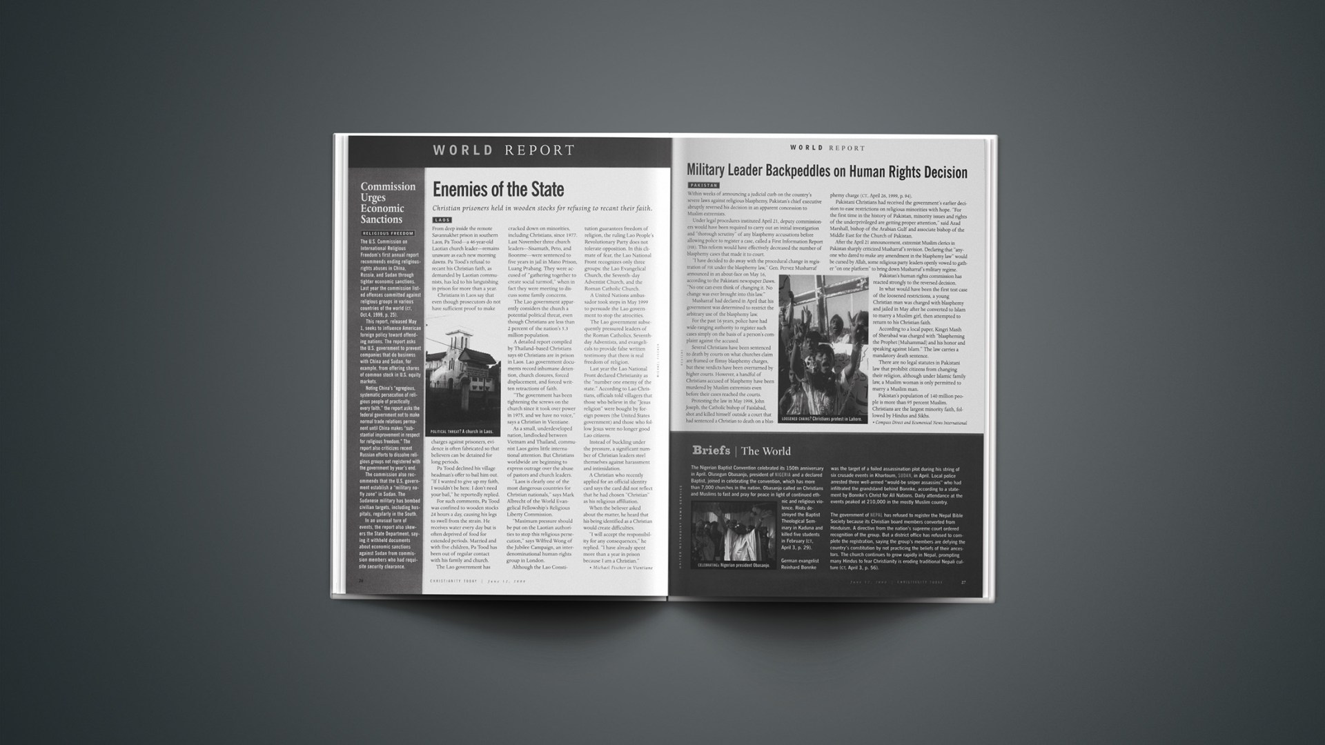Within weeks of announcing a judicial curb on the country’s severe laws against religious blasphemy, Pakistan’s chief executive abruptly reversed his decision in an apparent concession to Muslim extremists.Under legal procedures instituted April 21, deputy commissioners would have been required to carry out an initial investigation and “thorough scrutiny” of any blasphemy accusations before allowing police to register a case, called a First Information Report (FIR). This reform would have effectively decreased the number of blasphemy cases that made it to court.”I have decided to do away with the procedural change in registration of FIR under the blasphemy law,” Gen. Pervez Musharraf announced in an about-face on May 16, according to the Pakistani newspaper Dawn. “No one can even think of changing it. No change was ever brought into this law.”Musharraf had declared in April that his government was determined to restrict the arbitrary use of the blasphemy law.For the past 16 years, police have had wide-ranging authority to register such cases simply on the basis of a person’s complaint against the accused.Several Christians have been sentenced to death by courts on what churches claim are framed or flimsy blasphemy charges, but these verdicts have been overturned by higher courts. However, a handful of Christians accused of blasphemy have been murdered by Muslim extremists even before their cases reached the courts.Protesting the law in May 1998, John Joseph, the Catholic bishop of Faislabad, shot and killed himself outside a court that had sentenced a Christian to death on a blasphemy charge (CT, April 26, 1999, p. 94).Pakistani Christians had received the government’s earlier decision to ease restrictions on religious minorities with hope.