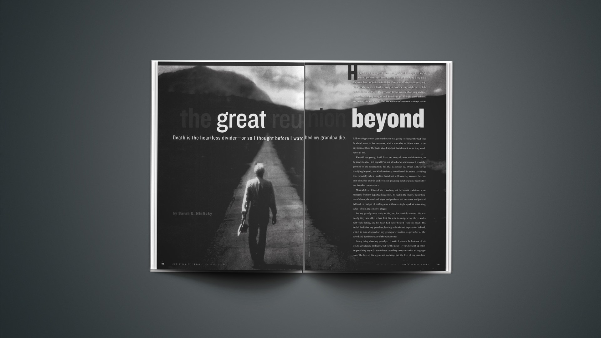 Funny thing about my grandpa: He retired because he lost one of his legs to circulatory problems, but for the next 15 years he kept up interim preaching anyway, sometimes spending two years with a congregation. The loss of his leg meant nothing, but the loss of my grandma meant everything; it put him out of the pulpit for good. With no wife left to love and no words left to preach, Grandpa did not see the purpose of remaining alone on this earth. Death was no longer the enemy but the gateway to the beloved.