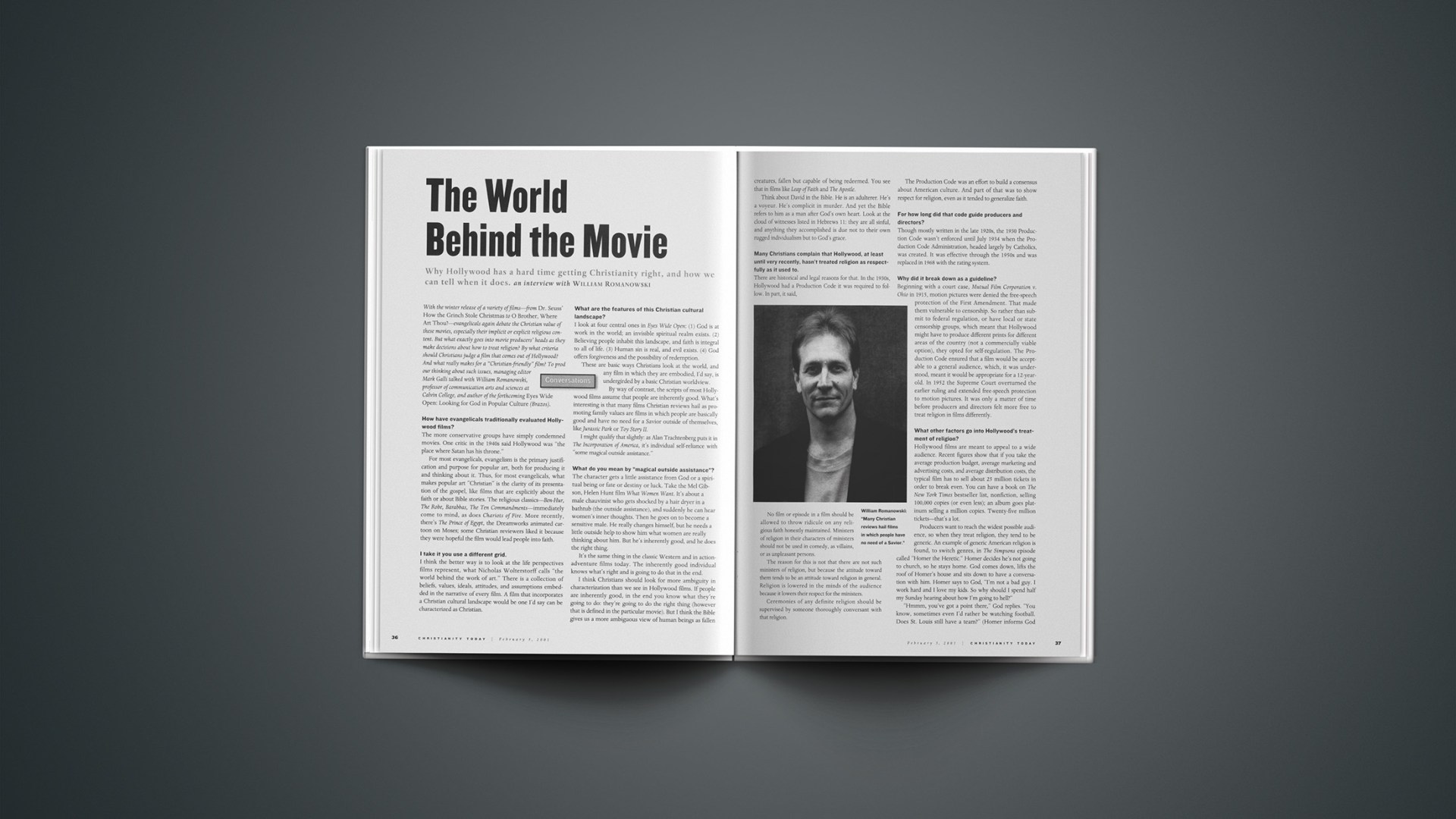 With the winter release of a variety of films—from Dr. Seuss’ How the Grinch Stole Christmas to O Brother, Where Art Thou?—evangelicals again debate the Christian value of these movies, especially their implicit or explicit religious content. But what exactly goes into movie producers’ heads as they make decisions about how to treat religion? By what criteria should Christians judge a film that comes out of Hollywood? And what really makes for a “Christian-friendly” film? To prod our thinking about such issues, managing editor Mark Galli talked with William Romanowski, professor of communication arts and sciences at Calvin College, and author of the forthcoming Eyes Wide Open: Looking for God in Popular Culture (Brazos).