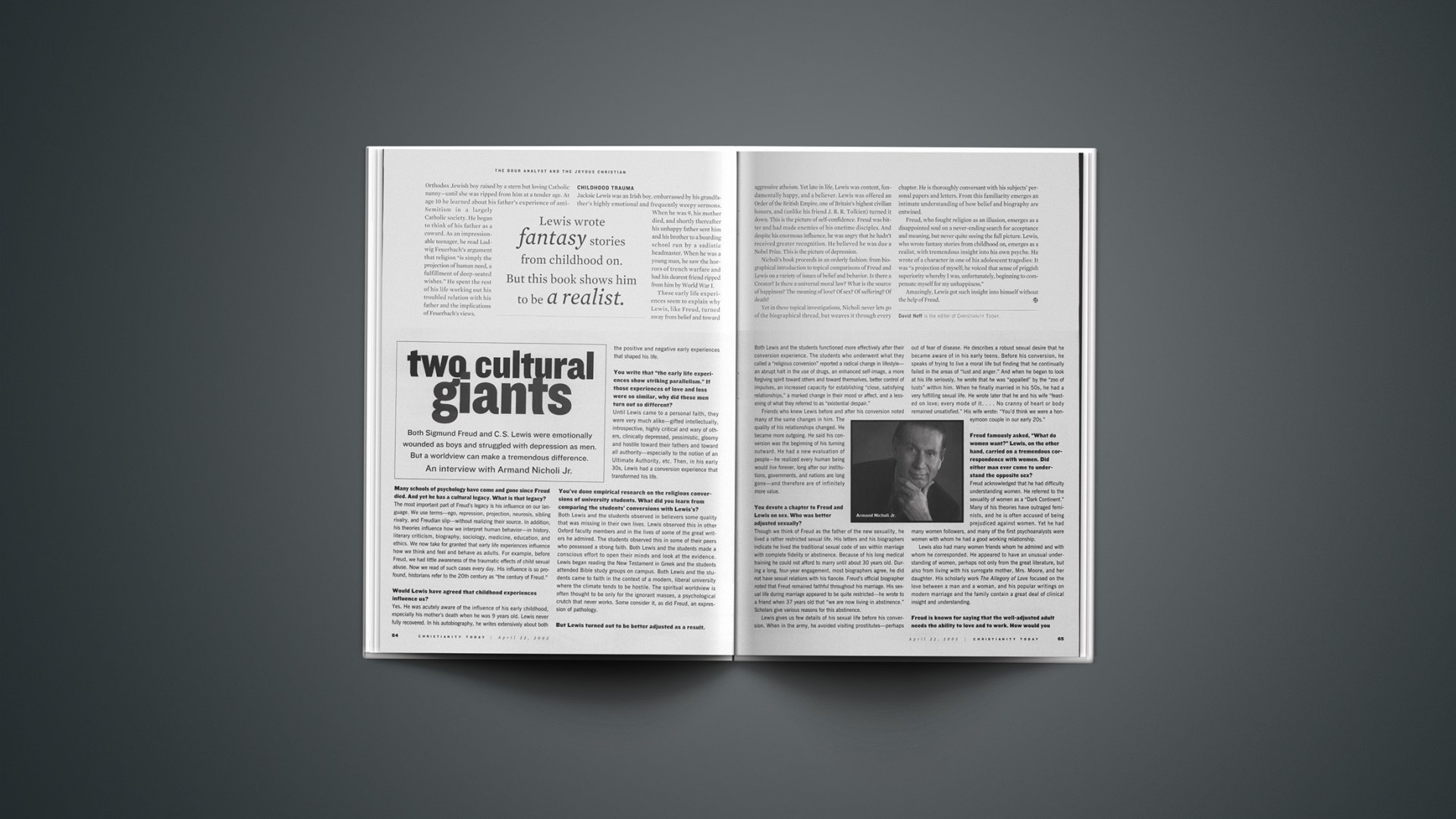 In 1999, Christianity Today sister publication Books & Culture interviewed Paul Vitz, the author of Sigmund Freud’s Christian Unconscious (1988) about Freud and his legacy. Another Books & Culture article looked at C. S. Lewis’ writings in relationship with postmodernists including Freud.