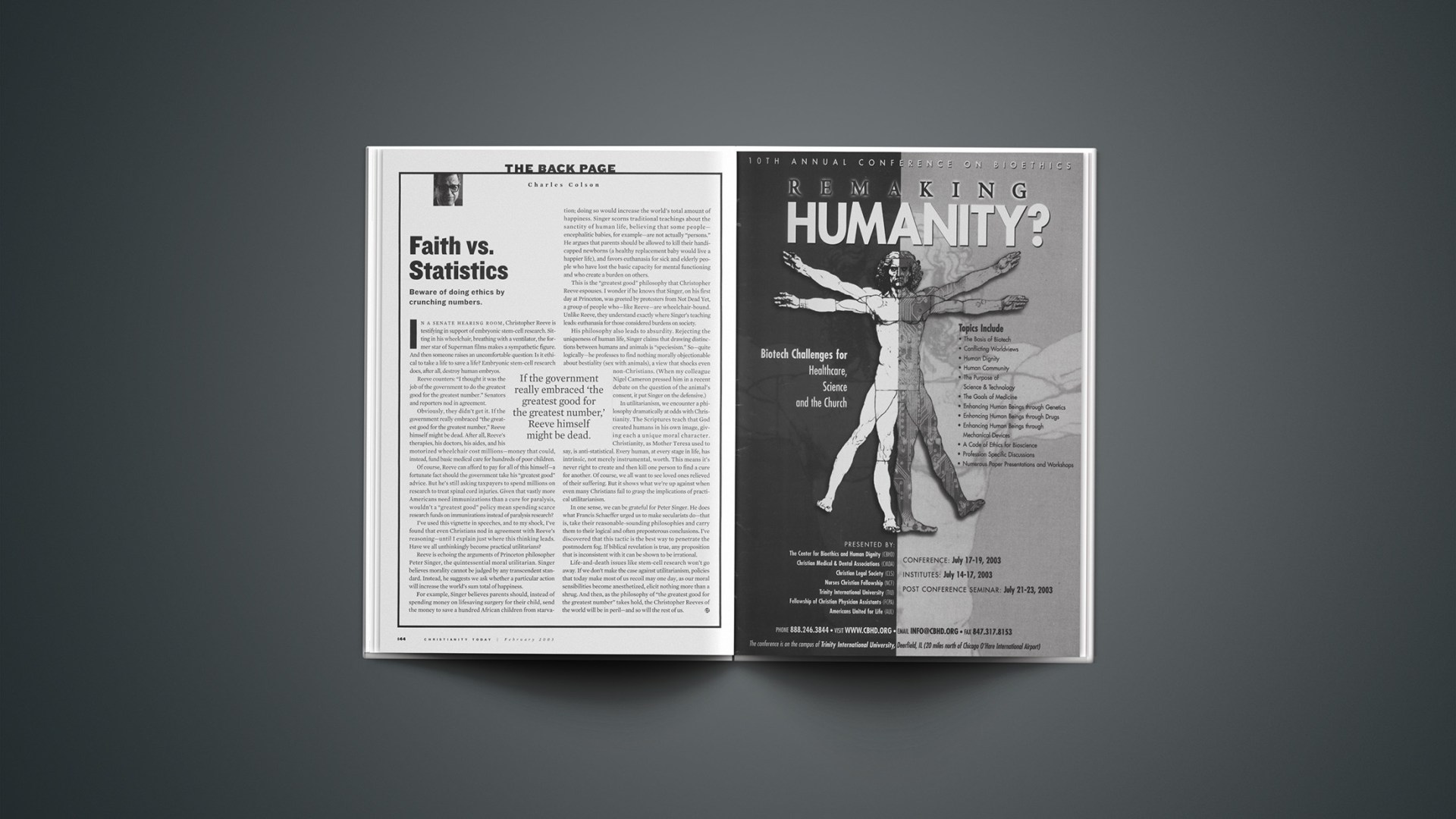 A 2000 Christianity Today editorial, “Thus Spoke Superman: Troubling language frames the stem-cell debate,” also referenced Christopher Reeve’s stance on bioethical research.