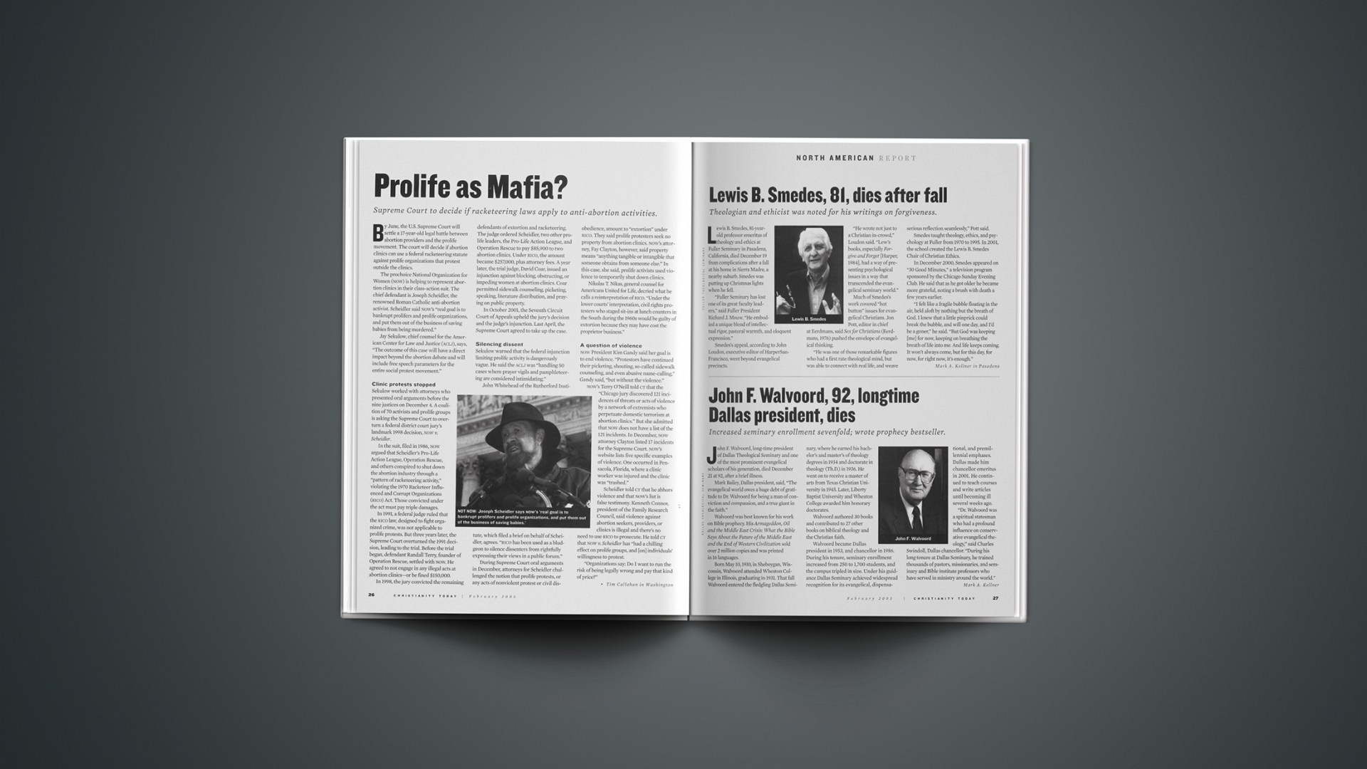 Christianity Today covered the landmark 1998 decision in “Pro-Lifers Hit with Treble Damages.” More abortion stories can be found at our life ethics archive.