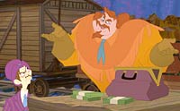 Like most Disney features, music plays an important part here. The score, written by Oscar-winning composer Alan Menken, with songs by k.d. lang, Tim McGraw, and Bonnie Raitt, is fittingly infused with a western flavor. There are even a couple of musical numbers, like Slim’s yodeling song; listen for the line, “Pioneer pied piper in 10-gallon underpants,” sung by the Willies, Slim’s trio of moronic sidekicks.