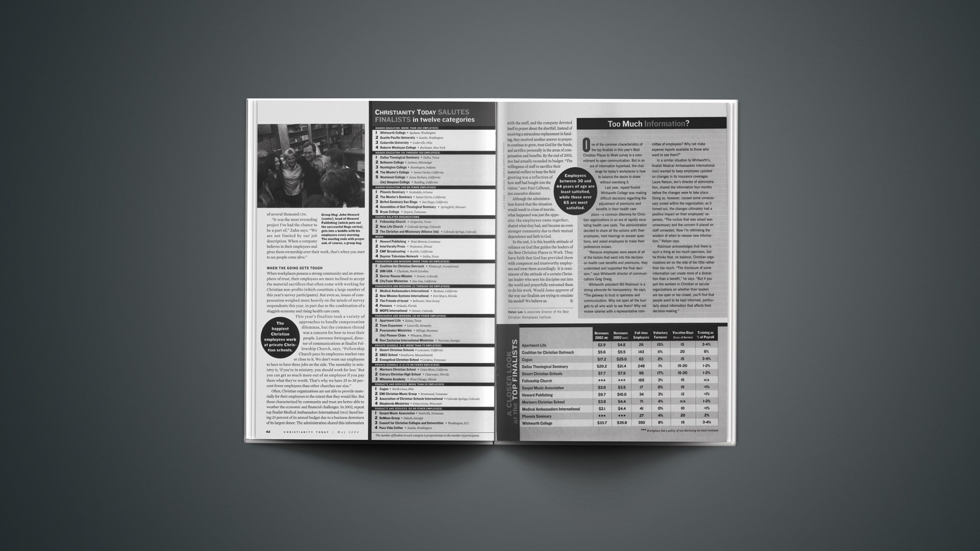 Inside CT: Great Places to Work | There is indeed much to praise and imitate in the Christian companies. (Feb. 28, 2003)