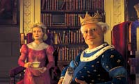 Shrek and Fiona are welcomed to the castle by a crowd of astonished and appalled locals. The people of Far Far Away, like their reigning monarchs, judge others by their appearance—and Shrek’s not their idea of admirable. For a while, it looks like a storybook retelling of Meet the Parents—when Shrek and the king trade insults over dinner, he looks likely to “Hulk out.” While Fiona consoles her fuming husband behind closed doors, the king becomes an easy subject for the manipulative Godmother. He determines to take Shrek out of the picture—first, by the hiring of a notorious assassin, and then by the influence of enchanted beverages that promise more than your daily dose of antioxidants.