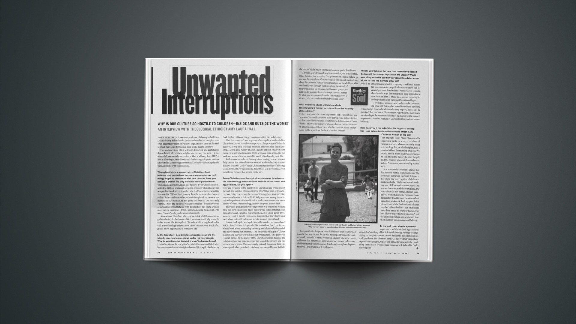 Her audiences are often left both disturbed and grateful for this ordained Methodist’s insights into the way our society tends to see children as an inconvenience. Hall is a Henry Luce III Fellow in Theology (2004-2005), and she is using this grant to write a book titled Conceiving Parenthood. Associate editor Agnieszka Tennant spoke with Hall recently.