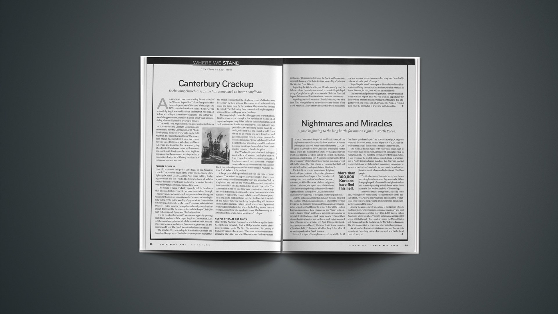 Weblog: Anglican Report Treats Conservatives Harsher than Liberals | News, predictions that commission would sanction Episcopal Church were greatly exaggerated. (Oct. 18, 2004)