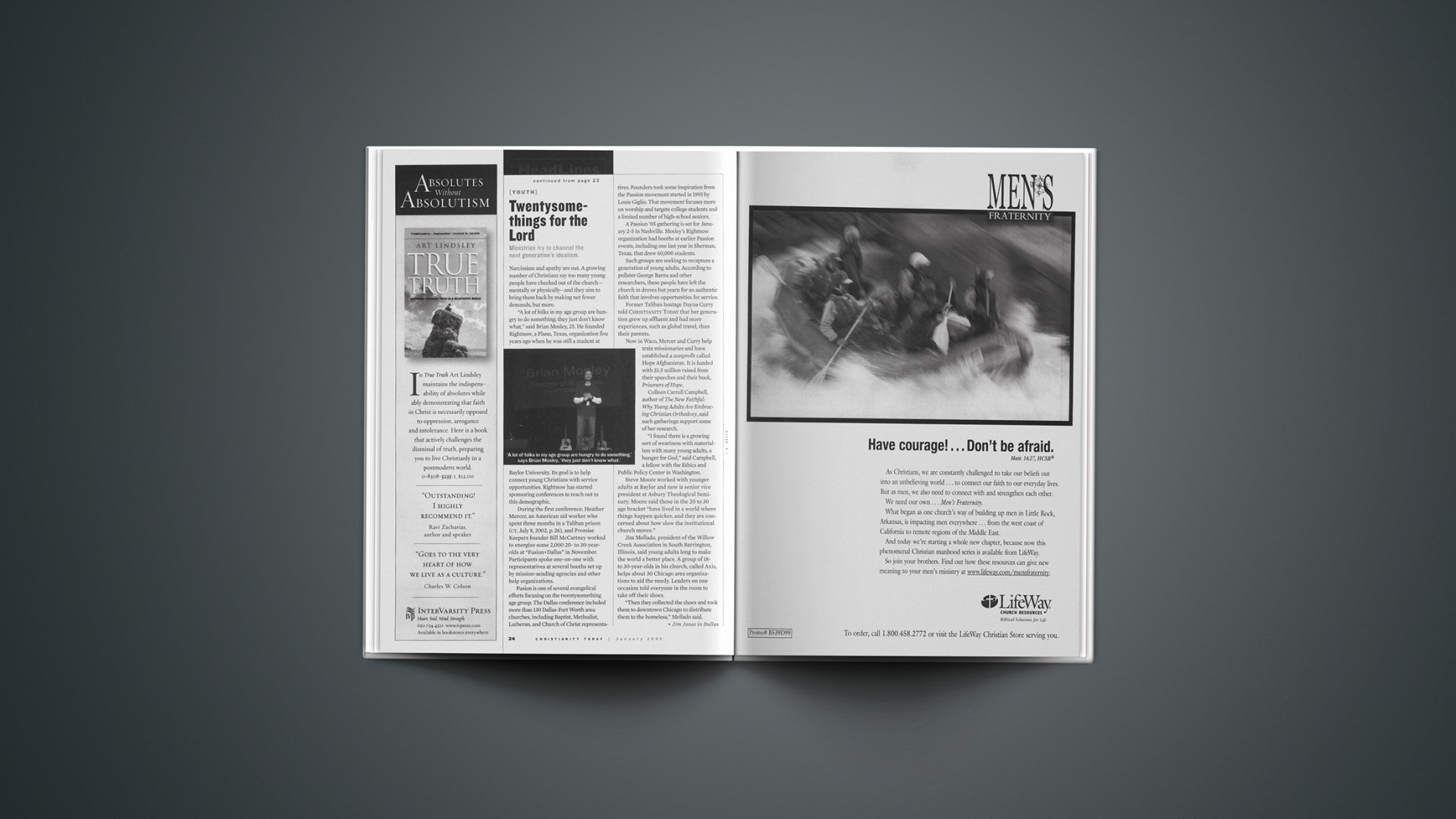 During the first conference, Heather Mercer, an American aid worker who spent three months in a Taliban prison (ct, July 8, 2002, p. 26), and Promise Keepers founder Bill McCartney worked to energize some 2,000 20- to 30-year-olds at “Fusion+Dallas” in November. Participants spoke one-on-one with representatives at several booths set up by mission-sending agencies and other help organizations.