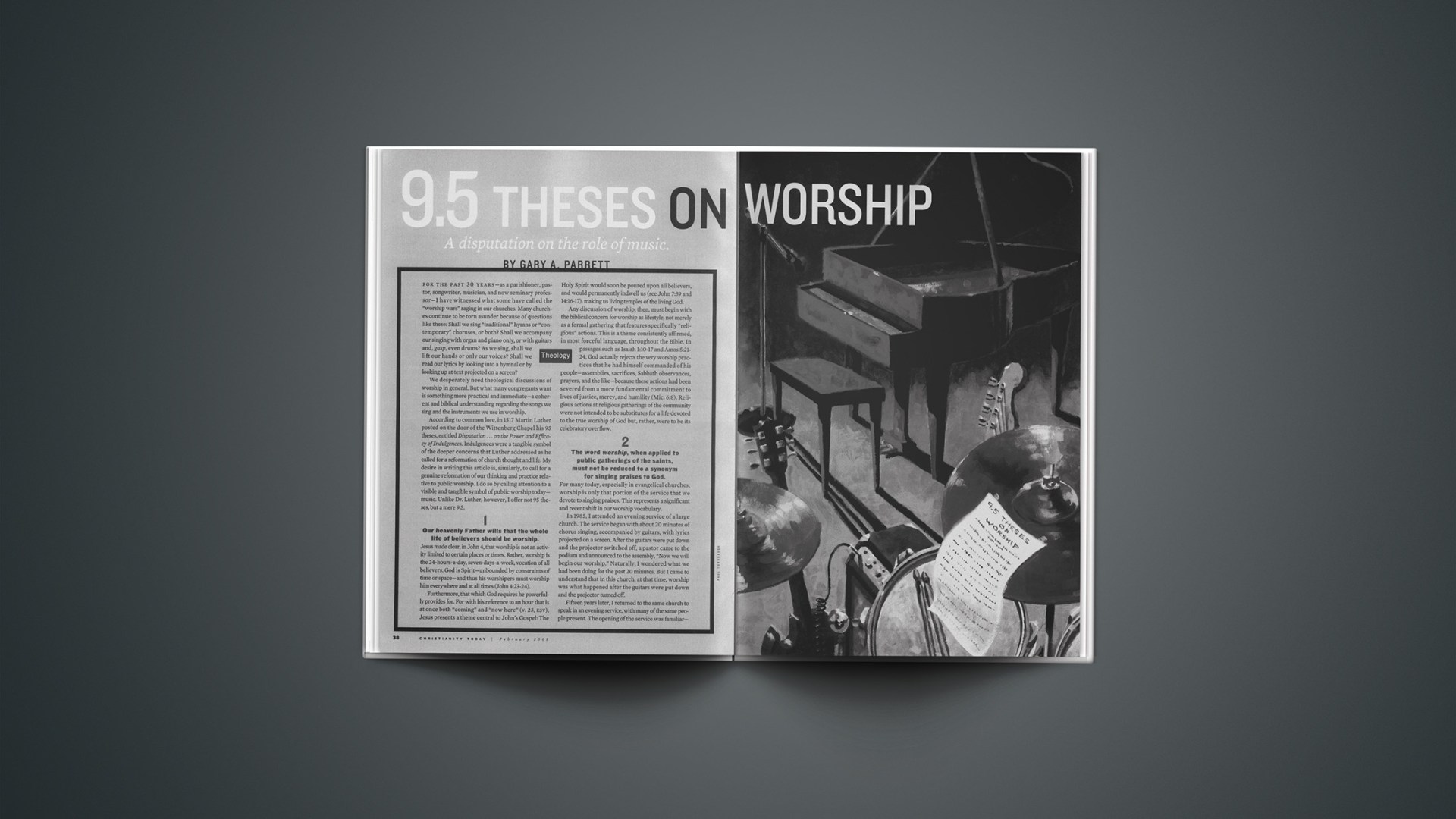 In 1985, I attended an evening service of a large church. The service began with about 20 minutes of chorus singing, accompanied by guitars, with lyrics projected on a screen. After the guitars were put down and the projector switched off, a pastor came to the podium and announced to the assembly, “Now we will begin our worship.” Naturally, I wondered what we had been doing for the past 20 minutes. But I came to understand that in this church, at that time, worship was what happened after the guitars were put down and the projector turned off.