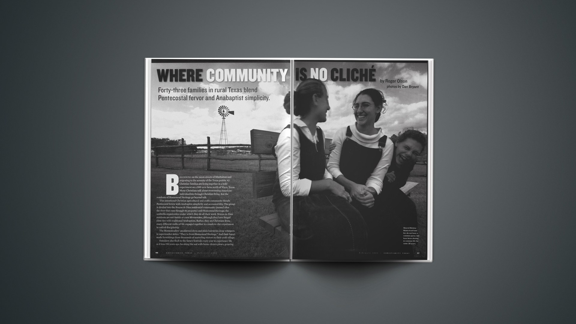 Beginning on the mean streets of Manhattan and migrating to the serenity of the Texas prairie, 43 Christian families are living together in a bold experiment on a 500-acre farm north of Waco, Texas. Many Christians talk about overcoming American individualism through Christian living. But the residents of Homestead Heritage go beyond talk.